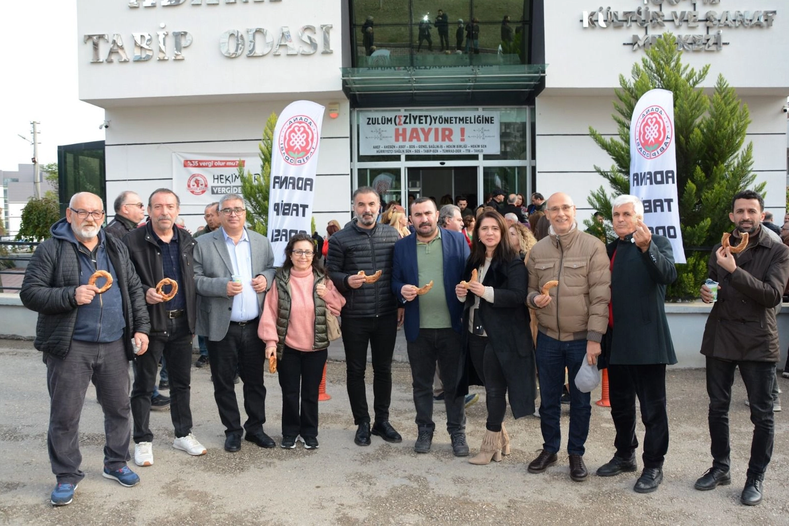 Sağlık ve Sosyal Hizmet Emekçileri Sendikası Adana Şube Başkanı Erol Eren, “Aile Sağlığı Merkezilerinde yönetmeliğinin geri çekilmesi için yaptığımız 2 -6 Aralık'ta 2024 tarihlerinde 5 günlük iş bırakmada üyemiz olan doktorlara "sınıf düşürme " ebe ve hemşirelerin " ücret kesintileri" yapılacağı ancak bunun 15 Aralıkta verilecek olan maaşlarda netleşeceği biliyoruz. Sağlık ve Sosyal Hizmet Emekçileri Sendikası hukuk büromuz tarafından hazırlanan sınıftan düşürme ve ücret kesintilerine itiraz dilekçelerimiz hazırlanmış ve üyelerimiz sağlık müdürlüklerine itiraz dilekçelerine vermeye başlamışlardır. Bundan sonraki eylemlere eczacılar, diş hekimleri gibi meslek örgütlerini ve eczaneleri de sürece dahil edecek çalışmalar ile 2 .ve 3. basamak sağlık kurumlarını da sürece katmak için çalışma yapmalıyız” diye ifade etti.