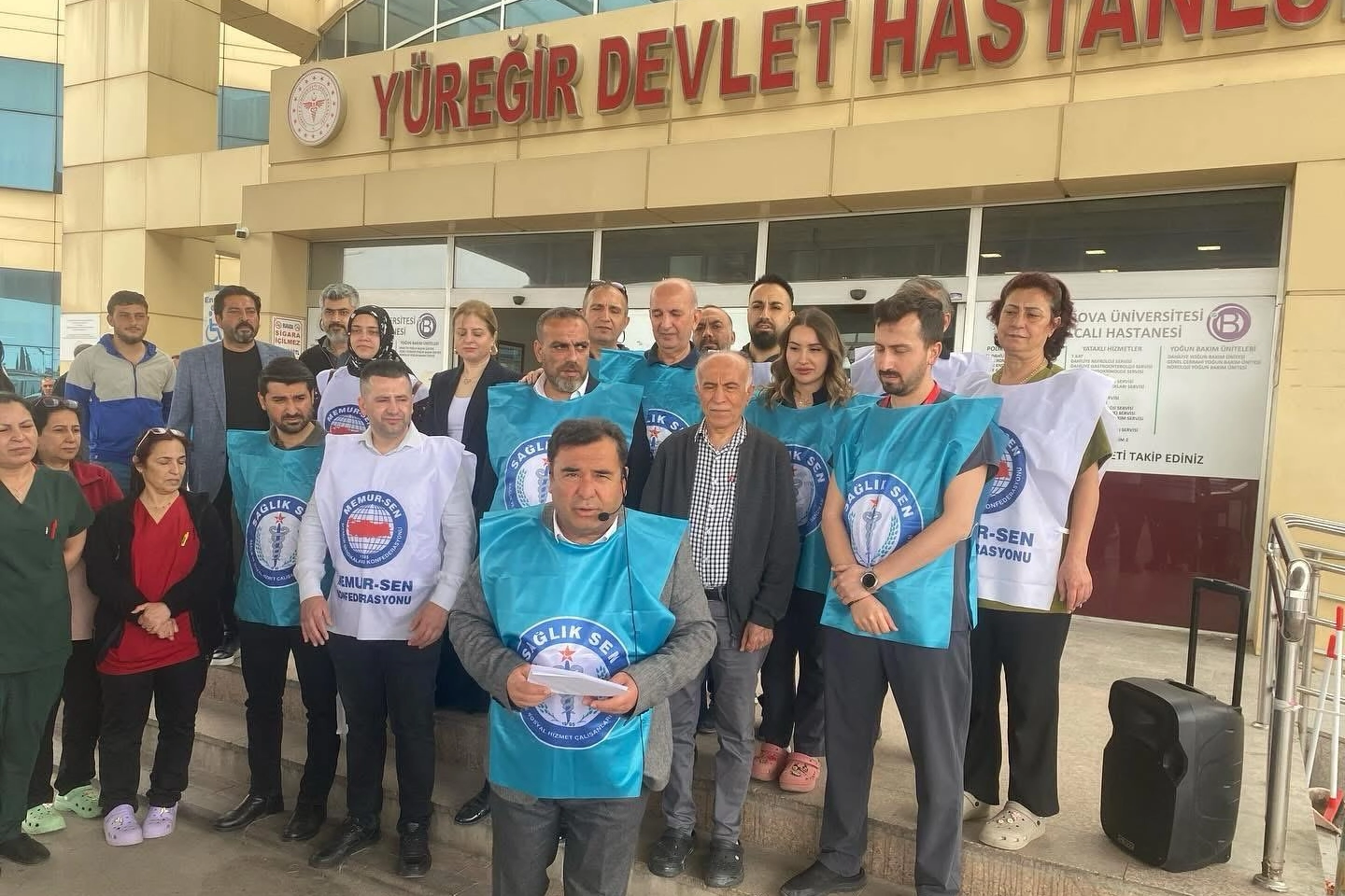 Memur-Sen İl Temsilcisi ve Sağlık-Sen Adana Şube Başkanı Bekir Nennioğlu, Yüreğir Devlet Hastanesi'nde sağlık çalışanlarıyla birlikte idari izin günlerinde nöbet ve mesai usulü çalışan sağlık çalışanlarının ücret kesintisi hakkında basın açıklaması yaptı. Açıklamada idari izin günlerinde nöbet ve vardiya usulü çalışan sağlık emekçilerinin maaşlarında yapılan kesintilere tepki gösterdi. Bayram tatili süresince büyük bir özveriyle görev yapan sağlık personelinin, yanlış uygulamalar nedeniyle mağdur edildiğini belirten Nennioğlu, “Bu haksızlık artık son bulmalı” çağrısında bulundu.
