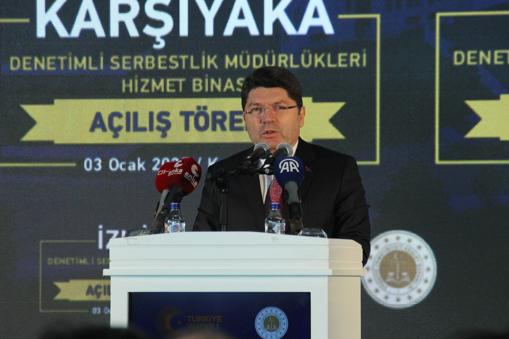 "Herkes adli tıbbın adalet terazisinde eşit yer alır"Bakan Tunç konuşmasına şöyle devam etti: “Bugün açılışını gerçekleştirdiğimiz 14 bin 703 metrekare kapalı kullanım alanına sahip İzmir Denetimli Serbestlik Müdürlüğümüz ve 3 bin 200 metrekare kapalı kullanım alanına sahip Karşıyaka Denetimli Serbestlik Müdürlüğümüz; 224 kişilik konferans salonu ve toplantı salonlarıyla 13 adet infaz bürosu, 44 adet bireysel görüşme odası, 10 adet grup çalışma odasıyla İzmir ili sınırlarında yer alan 17 ilçemize hizmet verecek. Bugün aynı alanda İzmir ve Karşıyaka Denetimli Serbestlik Müdürlüğü binalarımızın açılışıyla birlikte İzmir Adli Tıp Kurumu Grup Başkanlığı Binası'nın da açılışını gerçekleştiriyoruz. Adli tıp bilimi, yargının gerçeği arama yolculuğuna ışık tutan bir bilim dalıdır. Herkes adli tıbbın adalet terazisinde eşit olarak yer alır. Çünkü adli tıp tarafsızdır. Onun görevi, yalnızca gerçeği bulmak ve adaletin terazisini dengelemektir. Yalnız ceza hukuku alanında değil, özel hukuk uyuşmazlıklarında da Adli Tıp Kurumunun yapacağı analiz ve tespitlerin önemi oldukça büyüktür. “