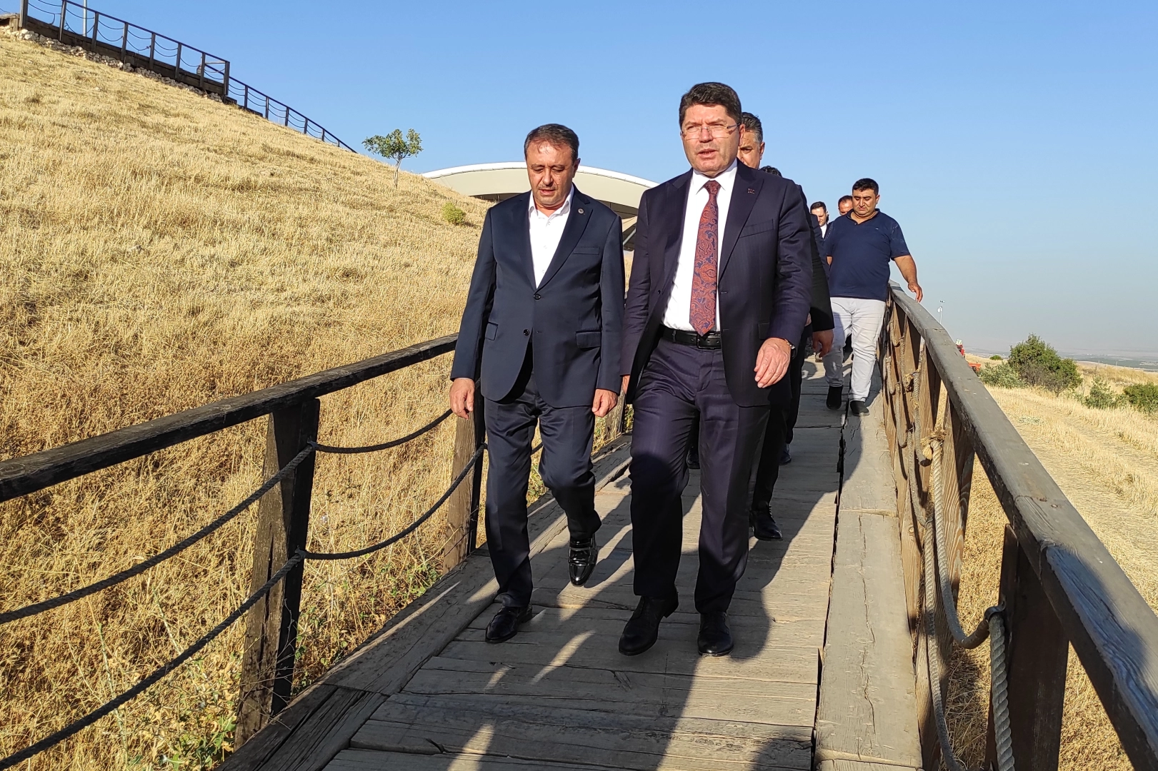 Adalet Bakanı Yılmaz Tunç, 12 bin yıllık geçmişiyle 'tarihin sıfır noktası' olarak anılan ve UNESCO Dünya Mirası Listesi'nde yer alan Göbeklitepe'yi ziyaret etti. Şanlıurfa'daki temasları kapsamında gerçekleştirilen ziyarette Bakan Tunç, kazı çalışmaları hakkında detaylı bilgi aldı. Bakan Tunç, Şanlıurfa'daki temasları çerçevesinde ziyaret ettiği Göbeklitepe'de Kazı Başkanı Prof. Dr. Necmi Karul'dan kazı çalışmaları ve eserler hakkında bilgi aldı. Bakan Tunç'a ziyaretinde, Şanlıurfa Valisi Hasan Şıldak, TBMM Başkanvekili ve Şanlıurfa Milletvekilli Bekir Bozdağ, Şanlıurfa milletvekilleri Cevahir Asuman Yazmacı, İbrahim Eyüpoğlu, Mehmet Ali Cevheri, Hikmet Başak ve Emin Önen eşlik etti.