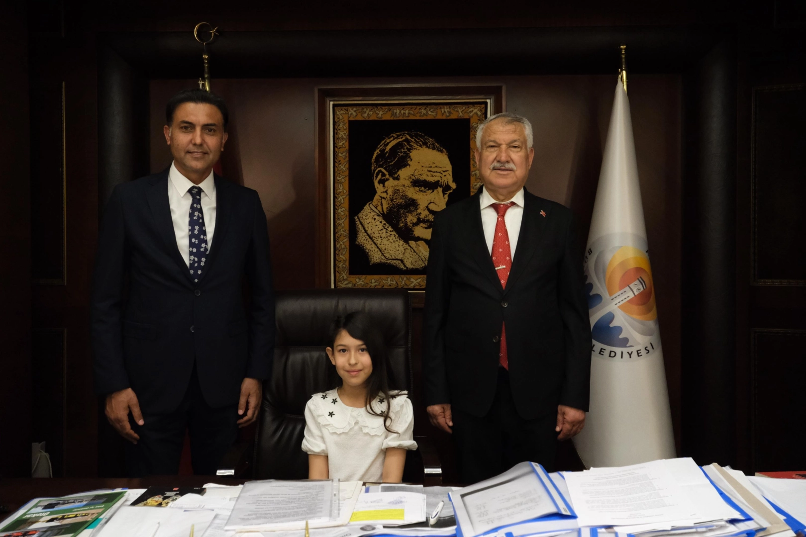 Ezgi Neva Selçuk, görevi devraldıktan sonra Mustafa Kemal Atatürk’ün Samsun’a çıkışıyla başlayan Milli Mücadele ruhuna ve 23 Nisan 1920’de Türkiye Büyük Millet Meclisi’nin kuruluşunun önemine değindi. Atatürk’ün çocuklara verdiği değeri hatırlatan Ezgi Neva, çocukların ve milletin bayramını kutladı. Başkanlık makamındaki buluşmada, Zeydan Karalar küçük başkana çeşitli hediyeler verdi. Ezgi Neva ise Karalar’a kendi elleriyle hazırladığı, üzerinde “23 Nisan Kutlu Olsun” yazılı bir resim hediye etti. Ezgi Neva Selçuk’a bu özel günde annesi Saniye Selçuk, babası Sadık Selçuk ve İl Milli Eğitim Müdür Yardımcısı Murat Bilal eşlik etti.