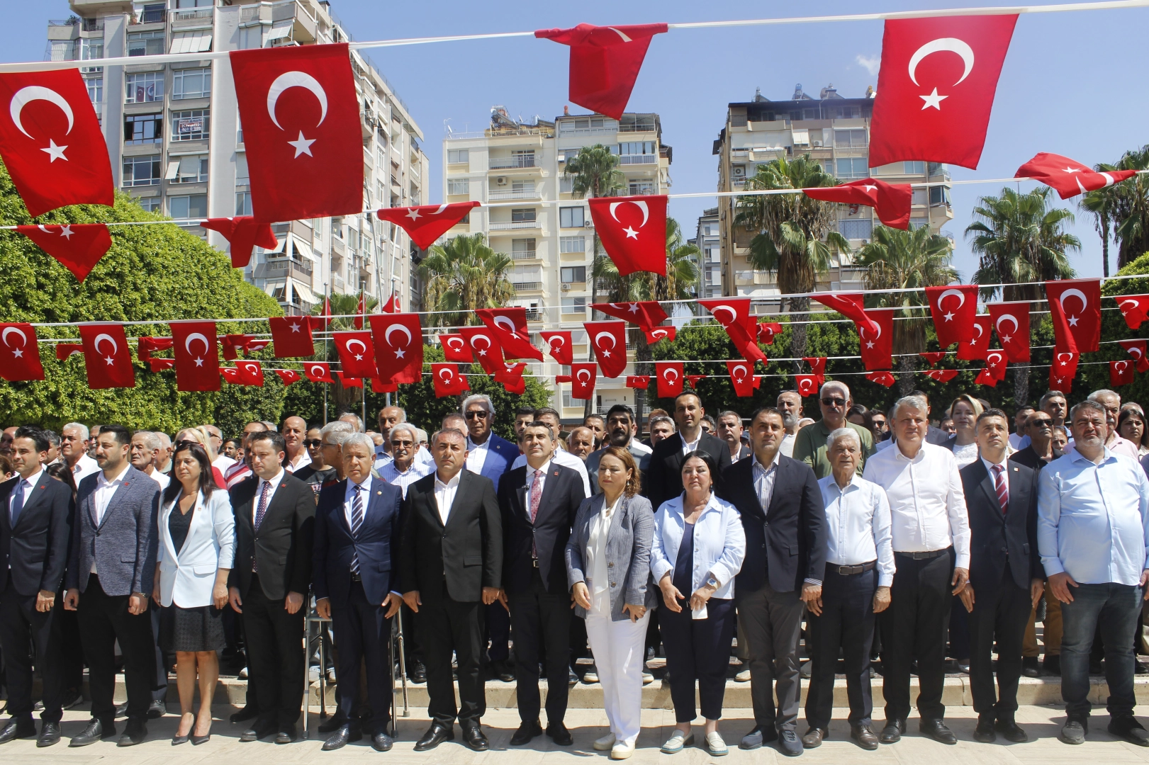 Törende CHP Adana İl Başkanı Doç. Dr. Anıl Tanburoğlu, Atatürk Anıtı’na çelenk bıraktı. Katılımcılar saygı duruşunda bulunurken, İstiklal Marşı da okundu.