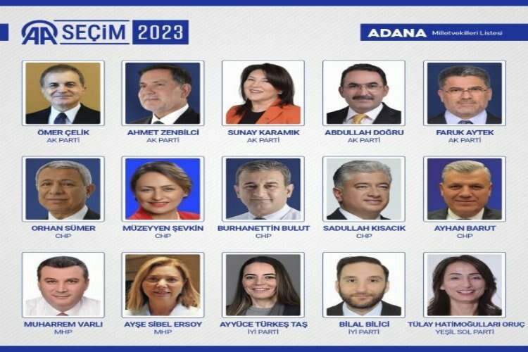 Cumhurbaşkanlığı ve 28. Dönem Milletvekilliği Seçimlerinin tamamlanmasının ardından kesin olmayan sonuçlara göre Adana’nın 15 milletvekili belli oldu. Alparslan Türkeş’in kızı Ayyüce Türkeş Taş, İYİ Parti’den Adana milletvekili oldu.