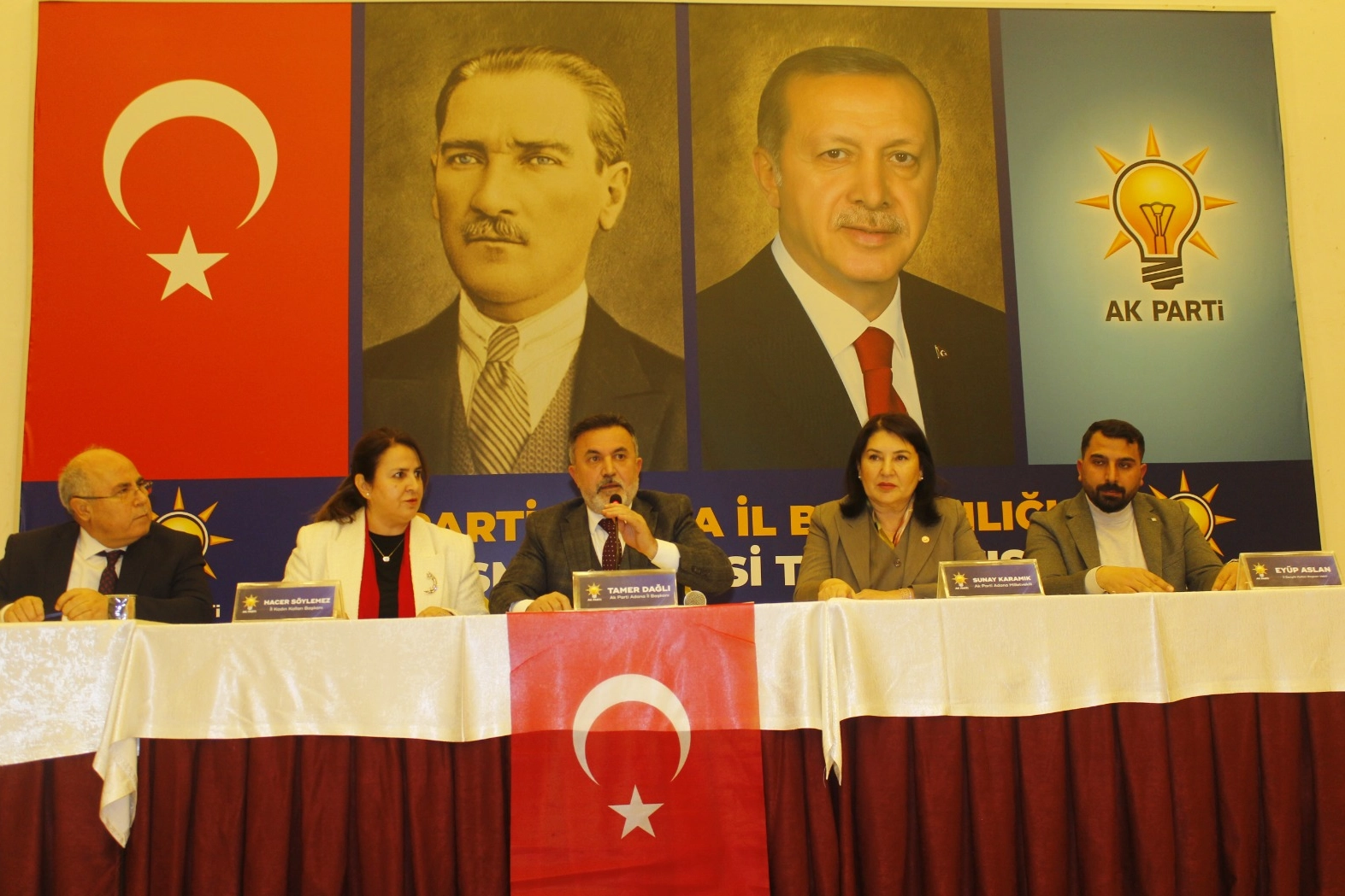 AK Parti Adana İl Başkanı Tamer Dağlı, “AK Parti saflarında yıllardır özveri, fedakârlık ve samimiyetle çalışan bir ekip var. Bu ekibin bugün aynı hassasiyetle burada olmasından gurur duyuyorum. Birlik ve beraberlik içerisinde AK Partimizi Cumhurbaşkanımızın çizdiği yolda ilk seçimde istediğimiz yere taşıyacağız. Siyasetin ana teması millete hizmet etmektir, insanlara duyarlı olmaktır. İnsanların dertlerini dertlenmek AK Partiliye yakışır; duyarsızlık ve görmezden gelmek yakışmaz” şeklinde konuştu.