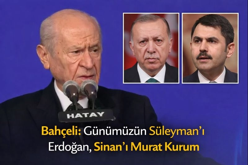 "GÜNÜMÜZÜN SİNAN'I MURAT KURUM'DUR"Bu dizelerin ardından tarihi bir benzetme yapan MHP Lideri, Cumhurbaşkanı Erdoğan ve Çevre, Şehircilik ve İklim Değişikliği Bakanı Murat Kurum için şu ifadeleri kullandı: