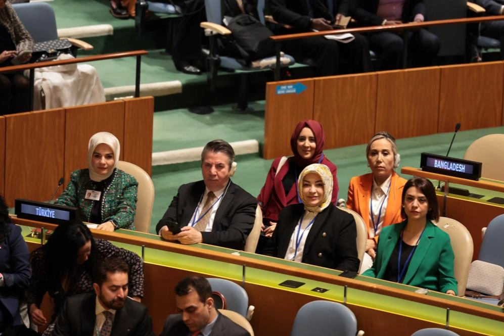 Aile ve Sosyal Hizmetler Bakanı Mahinur Özdemir Göktaş, Birleşmiş Milletler (BM) Kadının Statüsü Komisyonu Toplantıları için geldiği ABD’de temaslarına devam ediyor. Bakan Göktaş, BM Genel Merkezi'nde Mısır ve İslam İşbirliği Teşkilatı (İİT) işbirliğinde gerçekleştirilen "Sürdürülebilir Kalkınma için Ailelerin Güçlendirilmesi: Kadınların ve Kız Çocuklarının İnsan Haklarının Korunması Konusundaki En İyi Uygulamalar" başlıklı yan etkinliğe katıldı. Toplantıda konuşan Bakan Göktaş, "Tüm Müslüman ülkeleri Filistin'deki zulme karşı durmaya davet ediyorum. Başta Filistin olmak üzere dünyanın birçok yerinde yıkıcı krizler ve çatışmalarla karşı karşıya kalırken, kadın-erkek eşitliğini sağlamanın her zamankinden daha önemli olduğunu vurgulamak isterim" dedi.