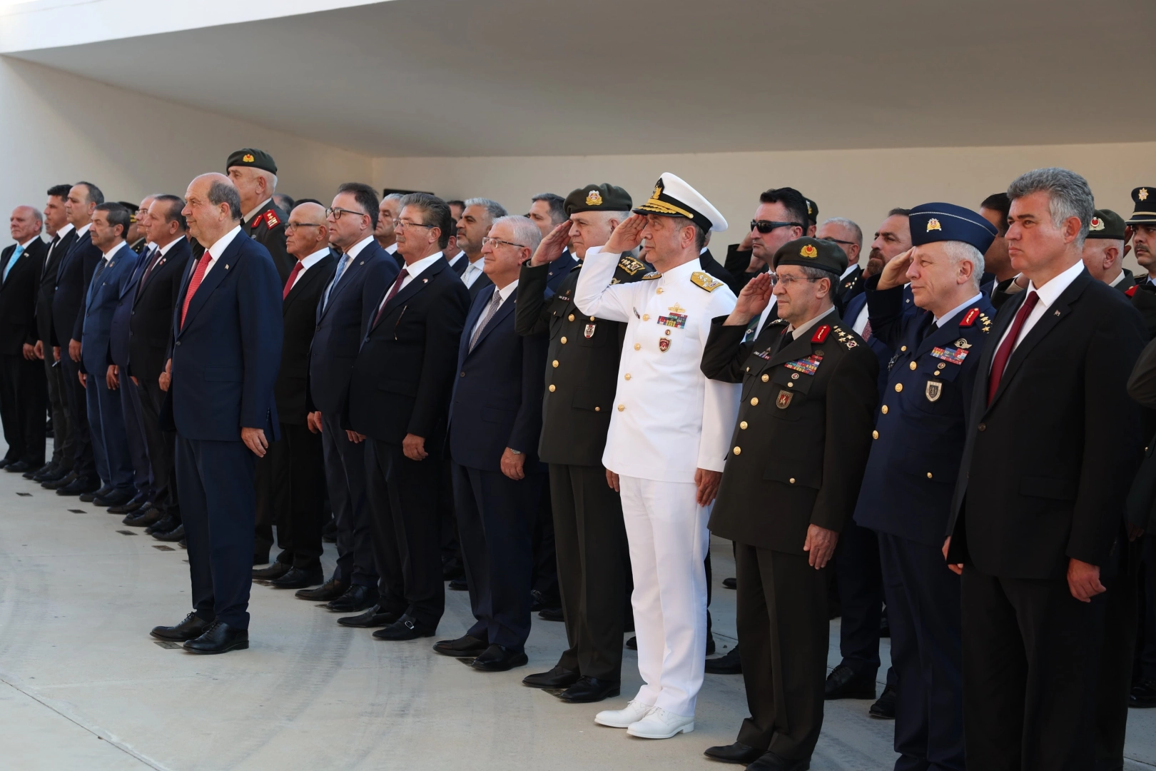 Milli Savunma Bakanı Yaşar Güler, Kuzey Kıbrıs Türk Cumhuriyeti’nde (KKTC) Kıbrıs Türk halkının var oluş mücadelesinin lideri Dr. Fazıl Küçük ve KKTC Kurucu Cumhurbaşkanı Rauf Denktaş’ın kabrini ziyaret etti. Milli Savunma Bakanı Yaşar Güler beraberindeki TSK Komuta Kademesi ile Mutlu Barış Harekatı’nın 50’nci yılı dolayısıyla geldikleri KKTC'deki ziyaretlerine devam ediyor. Güler, TSK Komuta Kademesi, Cumhurbaşkanı Ersin Tatar’ın başkanlığındaki heyetle birlikte Kıbrıs Türk halkının var oluş mücadelesinin lideri Dr. Fazıl Küçük ve KKTC Kurucu Cumhurbaşkanı Rauf Denktaş’ın kabrini ziyaret etti.