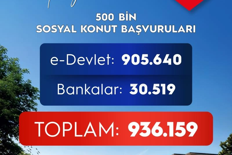 Çevre, Şehircilik ve İklim Değişikliği Bakanı Murat Kurum, 81 ilde 500 bin sosyal konutun inşa edileceği Yüzyılın Konut Projesi'ne ilk gün 936 bin 159 kişinin başvurduğunu açıkladı. Başvuruların 905 bin 640'ının e-Devlet, 30 bin 519'unun banka şubeleri aracılığıyla gerçekleştiği bildirildi.