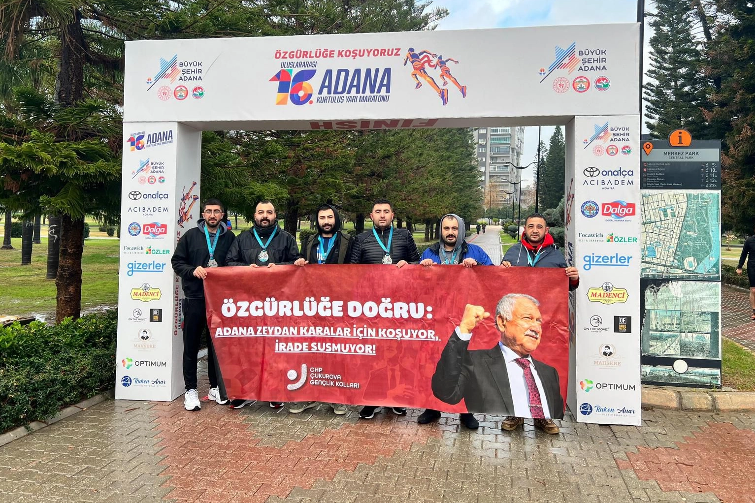 Cumhuriyet Halk Partisi Çukurova Gençlik Kolları, 16. Uluslararası Adana Kurtuluş Yarı Maratonu’nda Zeydan Karalar için koştu. Adana Büyükşehir Belediyesi tarafından düzenlenen maratona katılan Çukurova Gençlik Kolları, halk koşusunda yerini alarak adalet ve özgürlük mesajı verdi. Başkan Yusuf Türkeş, etkinliğin yalnızca sportif bir organizasyon olmadığını belirterek, Çukurova Gençlik Kolları olarak Adana’nın iradesi Zeydan Karalar için pankartımızla halk koşusunda yerimizi aldık. Bu adımlar sadece bir maratonun değil, dayanışmanın ve inancın adımlarıdır” dedi.