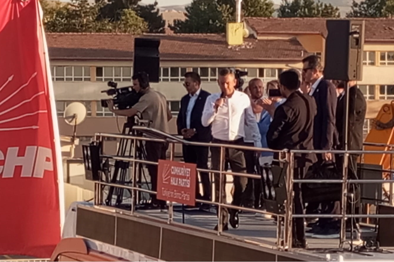 31 Mart seçimlerinde birinci parti çıktıklarını söyleyen Özel, "19 Mart'ta yaşananlar iktidara değil, milletin iradesine karşı bir darbe girişimidir. Bu girişim İstanbul Büyükşehir Belediye Başkanı Ekrem İmamoğlu'na ve milletin takdirine karşı yapılmıştır" ifadelerini kullandı. 6 Şubat 2023 depremleri sonrası Malatya'da inşasına başlanan kalıcı konutların büyük bir bölümünün hala teslim edilmediğini ileri süren Özel, "Cumhurbaşkanı Erdoğan bir yılda 650 bin konut sözü vermişti. Malatya için verilen söz 101 bin konuttu, ancak bugün itibarıyla sadece 35 bin konut teslim edildi. 2,5 yıl geçti, hâlâ 75 bin kişi konteynerde yaşıyor. Konteynerler perişan, bu sıcakta insanlar sağlık tehdidi altında" dedi.