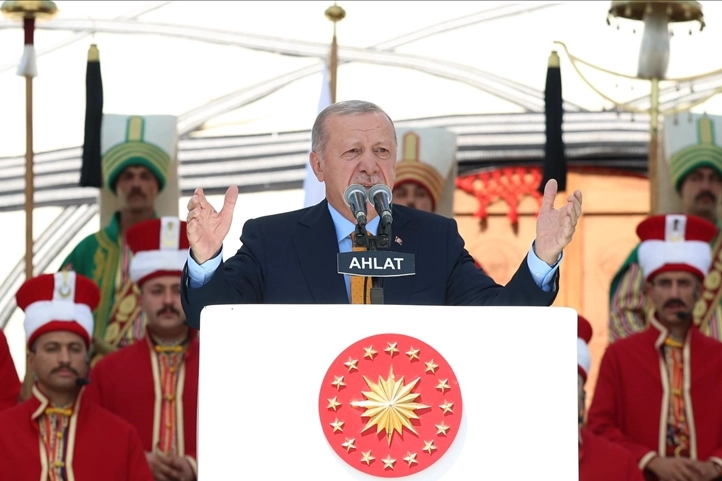 Cumhurbaşkanı Recep Tayyip Erdoğan, Malazgirt Zaferi'nin 954'üncü yıl dönümü etkinlikleri kapsamında, MHP lideri Devlet Bahçeli'nin de eşlik ettiği Ahlat Cumhurbaşkanlığı Külliyesi'nde Kabine Toplantısı'na başkanlık etti. Toplantının ardından yaptığı konuşmada, ekonomiden dış politikaya, altyapı projelerinden tarım desteklerine kadar birçok konuda değerlendirmelerde bulunan Erdoğan, muhalefete de sert eleştiriler yöneltti.