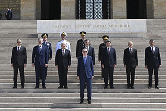Cumhurbaşkanı Recep Tayyip Erdoğan, "Güvenlikten demokrasiye, ekonomiden teknolojiye, savunma sanayinden dış politikaya milletimizin istikbalini güvenceye alacak tarihi adımlar atıyoruz." dedi.Cumhurbaşkanı Erdoğan ve YAŞ üyeleri, Cumhurbaşkanlığı Külliyesi'ndeki toplantı öncesi Anıtkabir'e geldi.