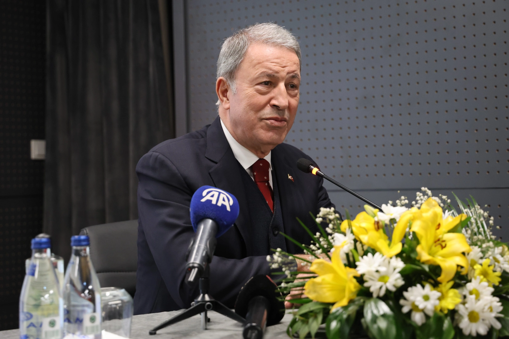 Türkiye'nin teröre karşı mücadeleyi açık ve şeffaf şekilde başarıyla sürdürdüğünü söyleyen Akar "En son terörist etkisiz hale getirilinceye kadar mücadele devam edecek. 40 yıldan beri bu milletin başına bela olan terör musibetini sonlandıracağız. Dün bir açıklama yapıldı. Bu bir af, taviz asla değildir. Terörle mücadele ve terörün bitmesi esastır. Şu anda arazide silahlar elinde olduğu müddetçe teröristlerin peşinde Mehmetçik operasyonlarını sürdürmeye devam edecek" dedi. Akar, "İçimizde ve dışımızda hala bazı alçaklar Türkiye'ye DEAŞ konusunda iftiraya devam ediyor. Türkiye, Fırat Kalkanı, Zeytin Dalı, Barış Pınarı ve Barış Kalkanı harekatlarıyla orada terörle mücadeleye devam etti. Şu anda da Şam hükümetine, hiçbir silahlı grubun kontrol dışında Suriye'nin kuzeyinde bulunmasına müsaade etmeyeceğimizi, arkasında kim olursa olsun mücadelemizi sürdüreceğimizi açık bir dille ortaya koyduk" ifadelerini kullandı.