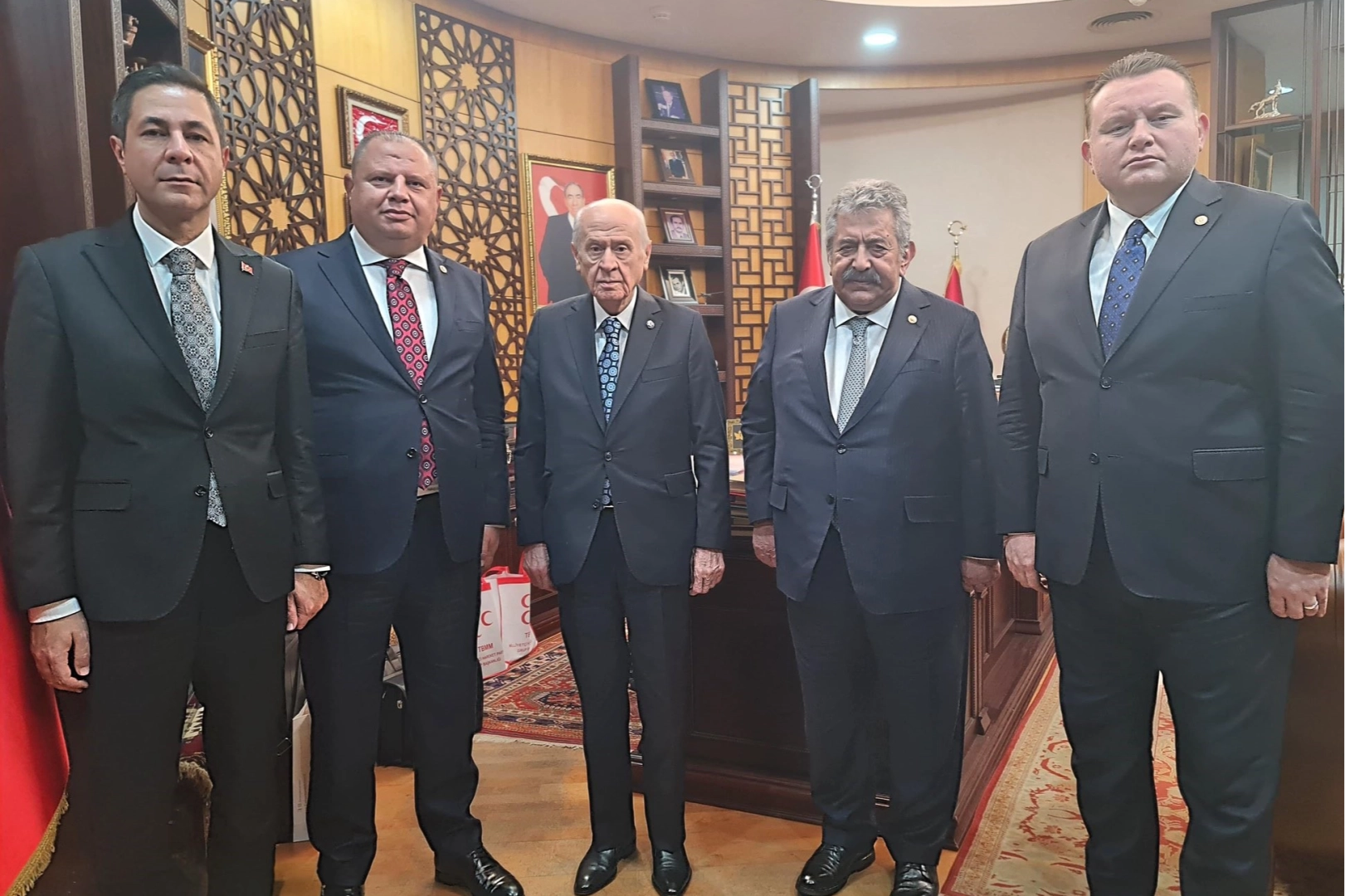 Milliyetçi Hareket Partisi’nin (MHP) Milli Dayanışma, Kardeşlik ve Demokrasi Komisyonu üyeleri, MHP Genel Başkanı Devlet Bahçeli ile bir araya geldi. Heyet, komisyonun yürüttüğü faaliyetlere ilişkin Genel Başkan Bahçeli'ye bilgi sundu.