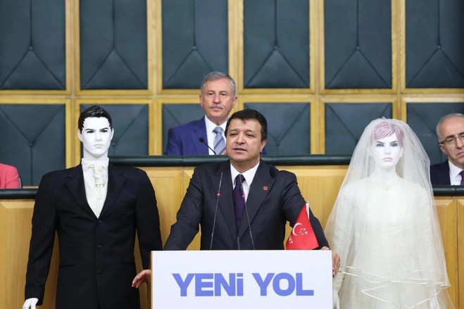 Saadet Partisi Genel Başkanı Mahmut Arıkan, TBMM’de gençlerin evlilikte karşılaştığı ekonomik zorlukları gündeme taşıdı. Kürsüye gelinlik ve damatlık giymiş mankenler yerleştirerek yaptığı konuşmada, gençlerin evlenmek istediğini ancak ekonomik nedenlerle evlenemediklerini belirterek, "Gençler evlenmiyor değil, evlenemiyor" dedi.