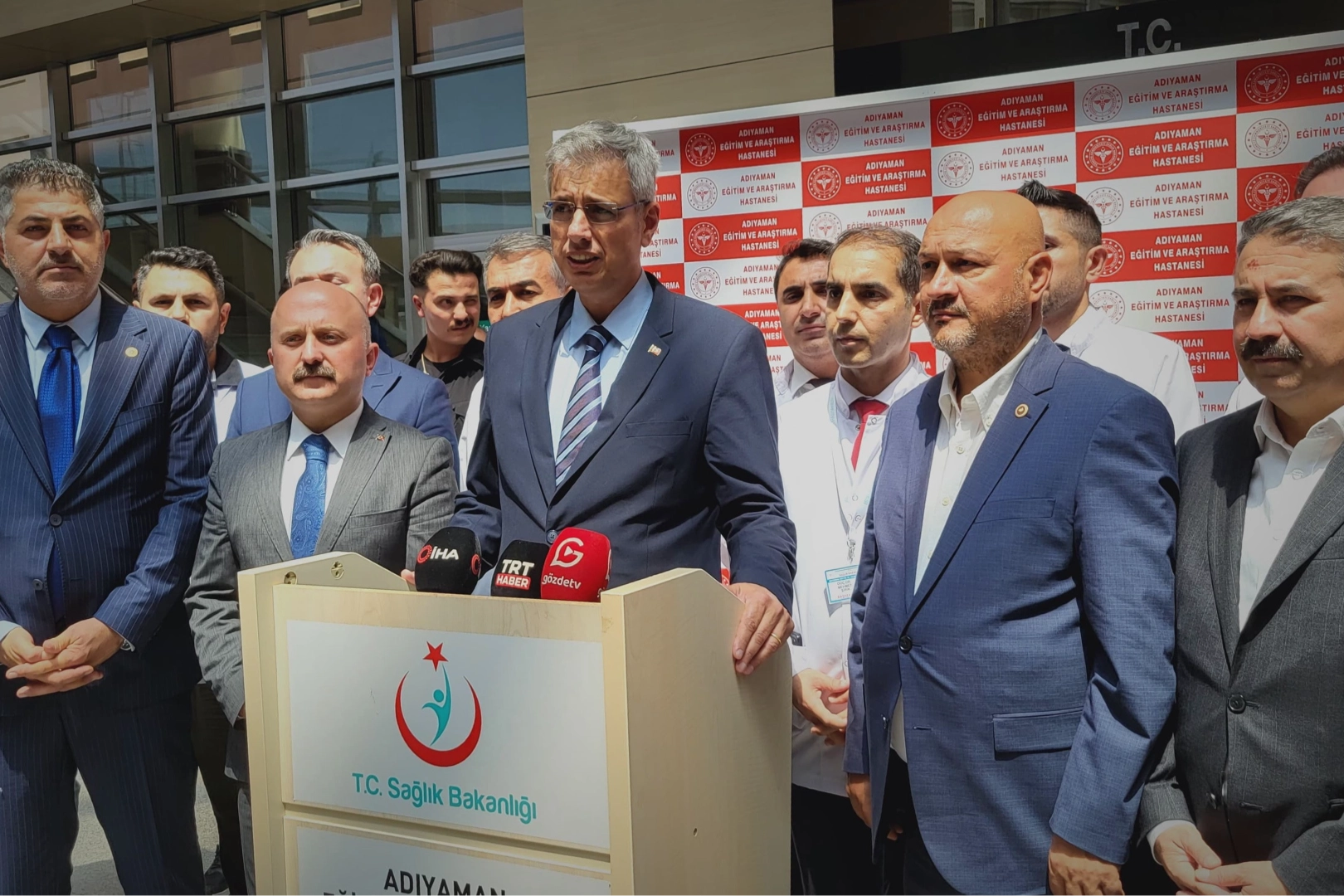 "Ekim ayında 300 yataklı hastanemizi hizmete sunacağız"Deprem yaralarını sarmak ve deprem sonrası verilen sağlık hizmetlerini değerlendirmek amacıyla Adıyaman’a geldiklerini dile getiren Sağlık Bakanı Memişoğlu, “Sabah yönetici arkadaşlarımızla, rektör hocamızla, valimizle bir toplantı yaptık. Vekillerimizle sahayı dolaştık, sorunları inceledik. Adıyaman sağlıkla ilgili yaralarını sarmaya devam ediyor. İnşallah Ekim ayında bu 300 Yataklı Hastanemizi hizmete sunacağız. Bu da sağlık hizmetlerini baya rahatlatacak ve deprem öncesindeki yatak oranlarımıza ulaşmış olacağız. Bunun yanında kent merkezinde 150 yataklı bir hastanemizin de inşaatı devam etmekte. Bunun yanında şehrin Batı bölgesinde hastane planlamamız var. Bunu da inşallah yakın zamanda planlayıp hedefimize ulaşacağız. Bunun yanında ilçelerimizdeki hastanelerde sağlık hizmetleri de devam ediyor. Sağlık çalışanlarımıza özverili çalışmalarından dolayı teşekkür ediyorum. Adıyaman yaralarını sarmaya devam ediyor. Ölenlerimize Allah’tan rahmet yaralılarımıza şifalar diliyorum. Allah bir daha bizlere öyle acılar göstermesin. Temel sağlık hizmetleri başta olmak üzere eczanesinden diş hekimliğine hastanesinden koruyucu sağlık hizmetine kadar hepsini daha iyi hale getirmeye çalışıyoruz. Onun için hep beraber uğraş içerisindeyiz. Milletimizden de destek istiyoruz. Özellikle bağımlılık gibi, kilo gibi, hareketsizlik gibi etkenlerden uzak durmalarını istiyoruz, iyi beslenmelerini istiyoruz” diye konuştu.