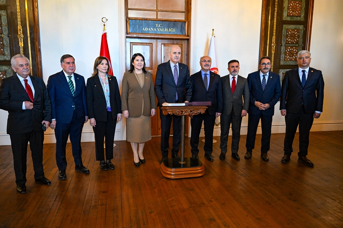 TBMM Başkanı Numan Kurtulmuş, çeşitli programlara katılmak üzere geldiği Adana’da Adana Valiliği’ni ziyaret etti. Kurtulmuş, Valiliğe gelişinde polis tören mangasını selamladı ve ardından şeref defterini imzaladı. TBMM Başkanı Kurtulmuş, Vali Yavuz Selim Köşger'den kentte yürütülen çalışmalarla ilgili bilgi aldı.
