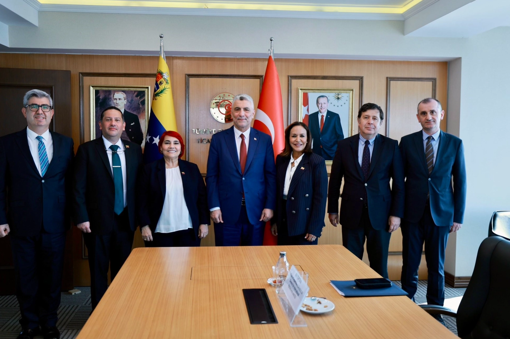 Bakan Bolat, sosyal medya hesabından yaptığı paylaşımda, "Venezuela Ticaret Bakanı Sayın Coromoto Godoy Calderon ve Turizm Bakanı Sayın Leticia Cecilia Gmez Hernndez ile verimli bir heyetlerarası görüşme gerçekleştirdik. Görüşmemizde, 16-17 Haziran 2025 tarihlerinde İstanbul’da düzenlenecek Venezuela İhraç Ürünleri Fuarı’nın hazırlıklarını ele aldık. Fuarın; gıda, sanayi, enerji, ilaç, lojistik hizmetler ve turizm gibi kilit sektörlerde faaliyet gösteren Türk ve Venezuelalı şirketler arasındaki karşılıklı ticaret, yatırım ve turizm alanlarındaki iş birliği imkanlarını artıracağına inanıyoruz. Toplantıda, ayrıca, ticari ve ekonomik ilişkilerimizin durumunu da gözden geçirdik ve ticaretimizin artırılmasına yönelik mevcut imkanlardan yararlanılarak, karşılıklı ticaret hacmini iki ülkenin değerli Cumhurbaşkanlarının ortaya koydukları yıllık 3 milyar dolar hedefine ulaşmak için gerekli çalışmaları yapmaya karar verdik" ifadelerini kullandı.