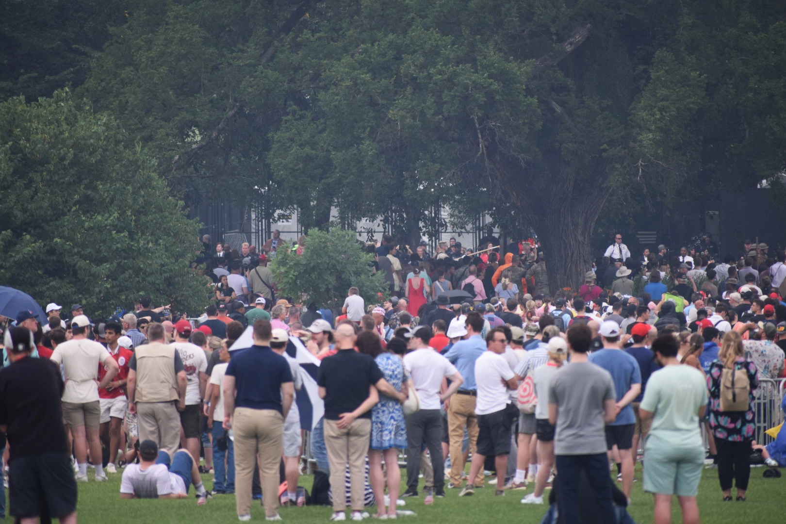 Geçit töreni Trump’ın doğum gününe denk geldiTören, Trump’ın 79. doğum gününe denk geldi. Kalabalık, Trump geçit töreni alanına geldiğinde 21 pare top atışı eşliğinde "Happy Birthday to You" şarkısını söyledi. Trump ve eşi Melania Trump’a Amerikan bayrağı hediye edilirken, etkinlik Lee Greenwood’un "God Bless the USA" şarkısının canlı performansıyla sona erdi. Fırtına beklentisine rağmen planlandığı gibi ilerleyen törende yalnızca F-22 uçuşu gibi birkaç hava gösterisinin iptal edildiği belirtildi.