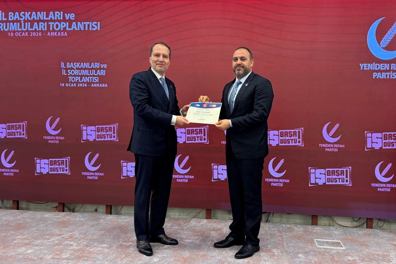“BU ÖDÜL TEŞKİLATIMIZIN ORTAK ZAFERİDİR”Ödül sonrası açıklamada bulunan Yeniden Refah Partisi Adana İl Başkanı Özkut Özdemir, bu ödülün şahsi bir başarıdan öte, Adana’da ilmek ilmek örülen bir teşkilat zaferi olduğuna dikkat çekerek şunları söyledi: “Bu başarı, sistemli bir çalışmanın, inancın ve adanmışlığın ürünüdür. Bu gurur tablosunda asıl pay sahibi; gecesini gündüzüne katan İl yönetimimiz, uç beylerimiz olan ilçe başkanlarımız ve yönetimleri, davanın emektar kahramanları kadın kollarımız ve geleceğimizin teminatı gençlik kollarımızdır. Yeniden Refah’a gönül vermiş her bir ferde teşekkür ediyorum. Siyaset sadece seçim zamanı değil, geçim zamanı da halkın içinde olmayı gerektirir. Bizim pusulamız bellidir; Genel Başkanımız Sayın Fatih Erbakan’ın öncülüğünde Millî Görüş çizgisinden sapmadan iktidara yürüyoruz. 'Bu ülke bizim özümüz, Adana bizim sevdamız' diyerek çıktığımız bu yolda bizlere yorulmak yasak. Adana’nın potansiyelini biliyoruz, sorunlarını görüyoruz ve çözümlerimizle geliyoruz. Hem yerelde hem ülkede Millî Görüş iktidar olana kadar, durmadan, yılmadan çalışmaya devam edeceğiz."