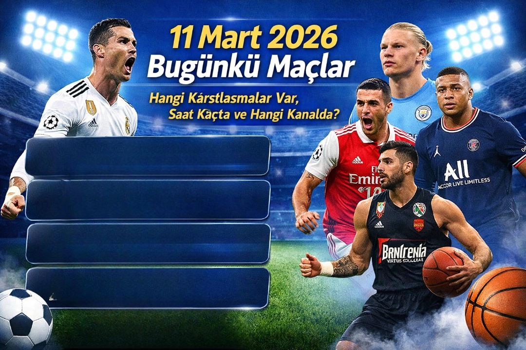 11 Mart 2026 Çarşamba günü UEFA Şampiyonlar Ligi, Trendyol 1. Lig, TFF 2. Lig ve EuroLeague’de heyecan dolu karşılaşmalar futbolseverleri bekliyor. Bugün hangi maçlar oynanacak, saat kaçta başlayacak ve hangi kanalda canlı yayınlanacak? İşte 11 Mart 2026 maç programı detayları…