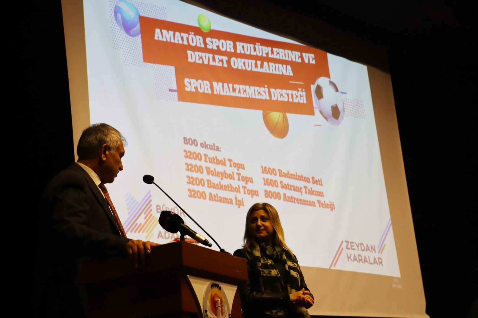 Adana Büyükşehir Belediyesi taş binada düzenlenen “Spor Malzemeleri Desteği” etkinliğine Büyükşehir Belediye Başkanı Zeydan Karalar başta olmak üzere; ASKF Başkanı Ahmet Bozan, AGSYD Başkanı Mustafa Boz, TSYD Başkanı Engin Kanber, birçok kulüp yöneticisi katıldı.