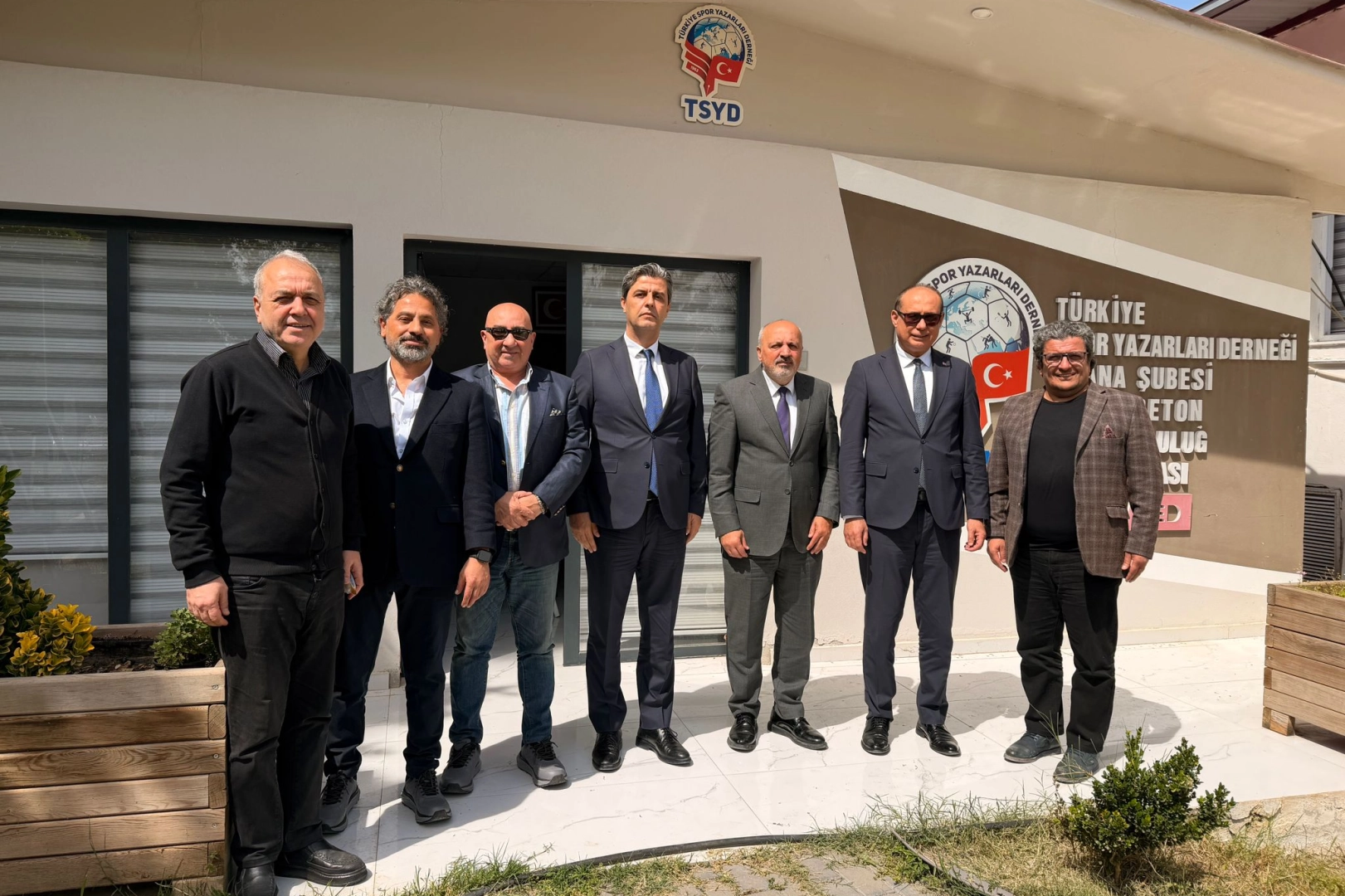 Adana Defterdarı Ahmet Balıkcı, beraberinde Mükellef Hizmetleri Müdürü Taner Canbolat ile birlikte Türkiye Spor Yazarları Derneği (TSYD) Adana Şubesini ziyaret etti. Balıkcı ve Canbolat’ı, TSYD Genel Merkez Yönetim Kurulu Üyesi Adnan Poyraz, TSYD Adana Şube Başkanı Engin Kanber, Asbaşkanlar Ergun Kara ve Hakan Köker, Mali Sekreter Şehmus Baysal ile Dernek Müdürü Mehmet Önal karşıladı. Ziyarette kurumlar arası iş birliği ve iletişim konularında değerlendirmelerde bulunuldu.