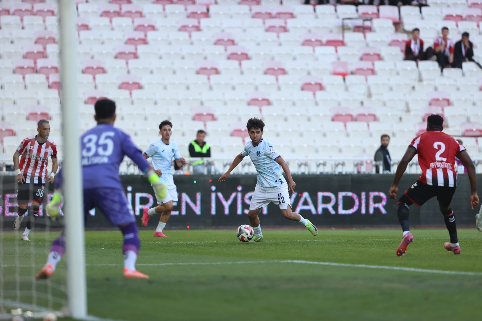 Adana Demirspor, BG Grup 4 Eylül Stadyumu’nda Sivasspor’a konuk oldu. Mavi-lacivertliler, ilk yarıda zaman zaman Osman ve Ahmet’in şutlarıyla gol arasa da sonuç alamadı. Ev sahibi ekip 29. dakikada Avramovski’nin golüyle öne geçti ve devre 1-0 tamamlandı.