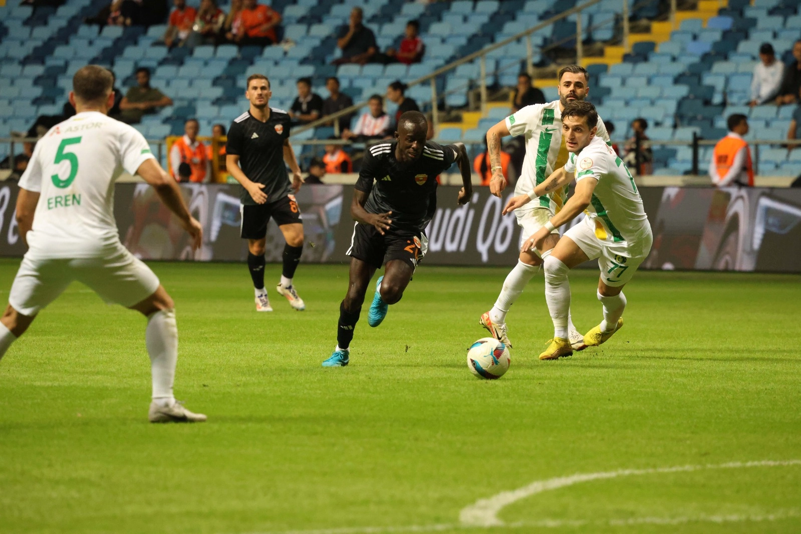 ADANASPOR OFSAYTA TAKILDIKarşılıklı ataklara sahne olan maçın 16’ncı dakikasında Adanaspor’dan Turgay’ın orta alandan savunma arkasına gönderdiği topu alan Diakite, ceza alanına girip kaleci ile karşı karşıya kaldığı pozisyonda sağ ayağının içiyle Abdulkadir’in sağında meşin yuvarlağı ağlara gönderdi. VAR’da yapılan incelemenin ardından ofsayt kararıyla gol geçerli olmadı.