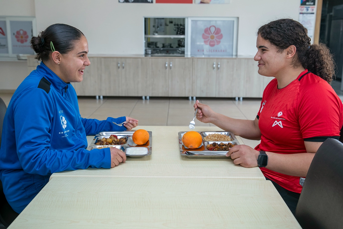 Kır Çiçekleri’nde ablası gibi gülle sporcusu olan 13 yaşındaki Nisa Zehra Turhan ise ablasıyla birlikte çalışmasının kendisine avantaj sağladığını belirterek, “Hocamdan çok fazla teknik öğreniyorum, ama ablamın da bana katkısı oluyor. Ablamla aynı branştayız ve antrenmanları birlikte yapıyor olmak, bana kendimi çok daha güvende hissettiriyor. Ablam her zaman yanımda. Ailemizi 15 günde bir görüyoruz. Burası benim de ikinci evim gibi. Bütün düzenimiz burada. Buraya gelmem benim için büyük bir avantaj. Ben kendimi burada keşfettim ve Türkiye başarısı elde ettim. U-14 Bursa Salon Şampiyonası’nda Türkiye birincisi oldum” dedi. Proje sayesinde daha istikrarlı ve disiplinli çalıştıklarını anlatan Turhan, “Hayallerimizi gerçekleştiren bu yolda Kır Çiçekleri’nde olmaktan çok mutluyum” diye konuştu.