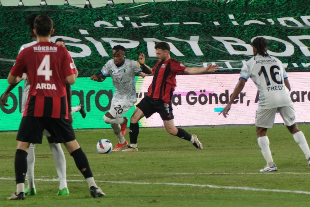 31. dakikada ceza sahası içinde Gökdeniz'in sert vuruşunda top rakip oyuncuya çarparak kornere çıktı.
