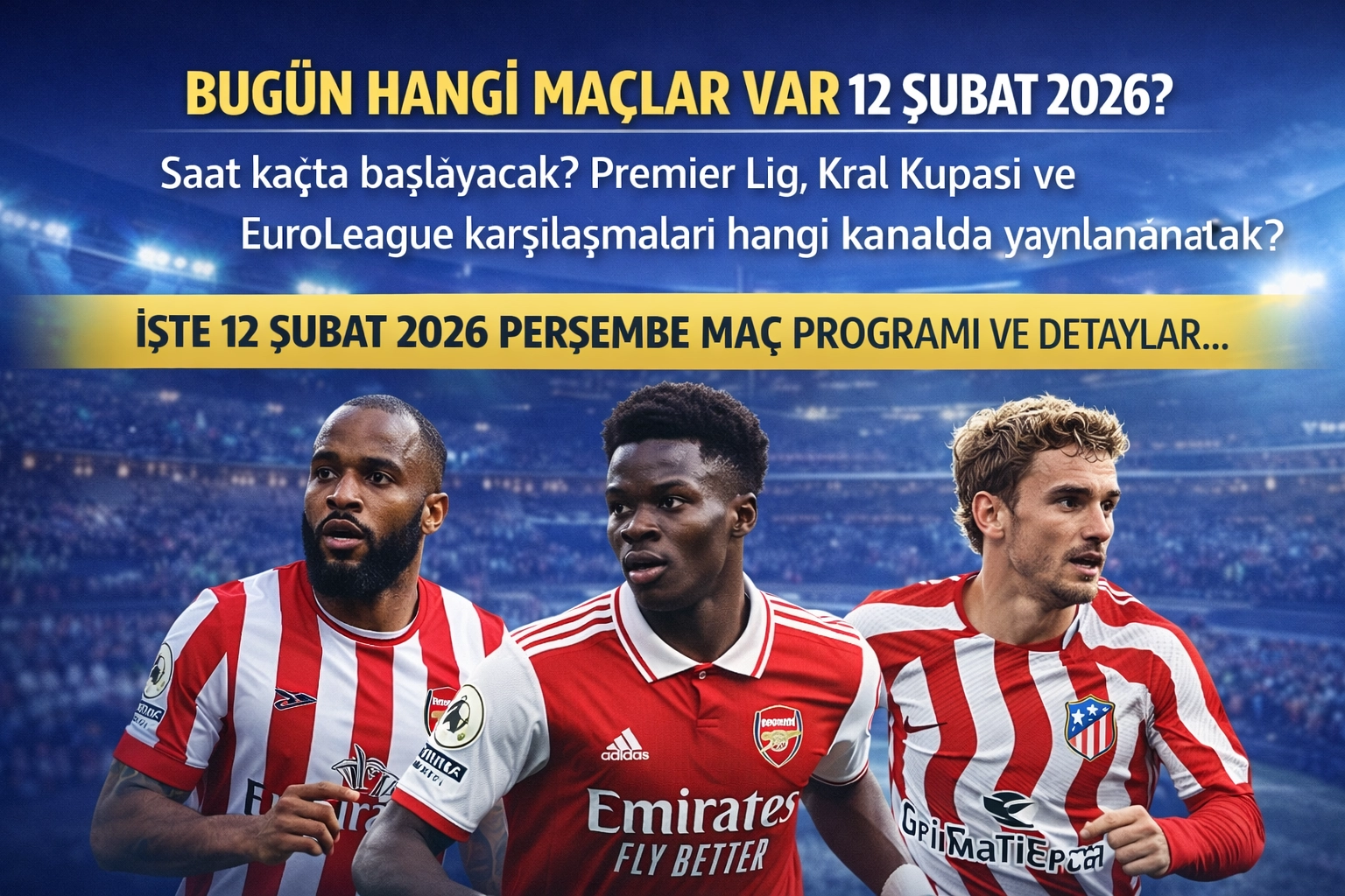 Sporseverlerin yakından takip ettiği 12 Şubat 2026 maç programı belli oldu. Futbol ve basketbol başta olmak üzere birçok önemli karşılaşma bu akşam ekranlara geliyor. Premier Lig’den Kral Kupası’na, EuroLeague’den Suudi Arabistan Pro Lig’e kadar günün maç listesi ve yayın bilgileri araştırılıyor. Peki bugün hangi maçlar var, saat kaçta ve hangi kanalda yayınlanacak? İşte günün maç programı…