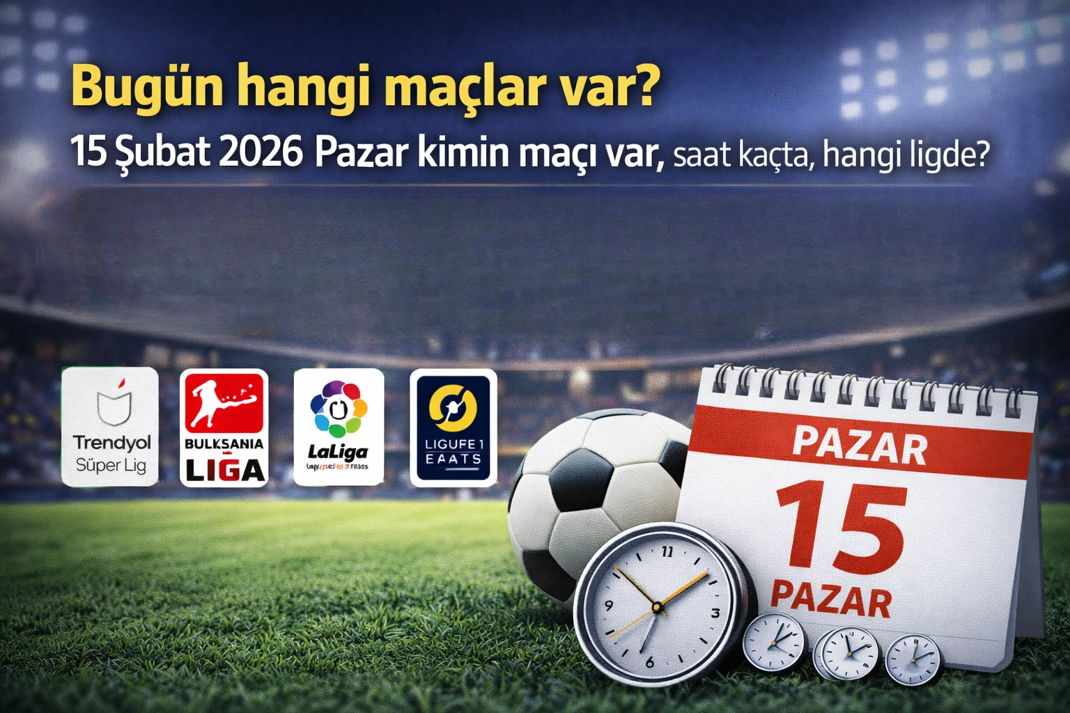 15 Şubat 2026 Pazar günü futbolseverleri yoğun bir maç takvimi bekliyor. Trendyol Süper Lig’den Avrupa’nın dev liglerine kadar birçok kritik karşılaşma bugün sahne alacak. Günün en dikkat çeken mücadelesi ise saat 20.00’de Rams Başakşehir ile Beşiktaş arasında oynanacak. İşte bugün oynanacak maçlar ve saatleri…