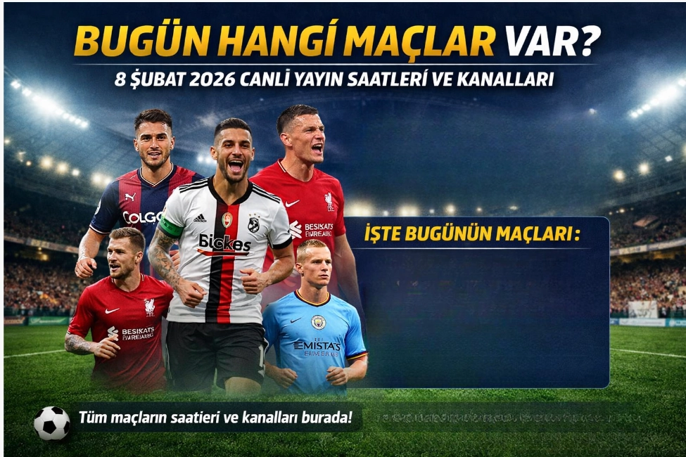 Bugün hangi maçlar oynanacak? Favori takımınız sahaya çıkıyor mu? Maçlar hangi kanalda ve saat kaçta yayınlanacak? 8 Şubat 2026 Pazar günü futbolseverler ekran başına kilitlenecek. İşte bugün izleyebileceğiniz tüm maçlar ve canlı yayın bilgileri…