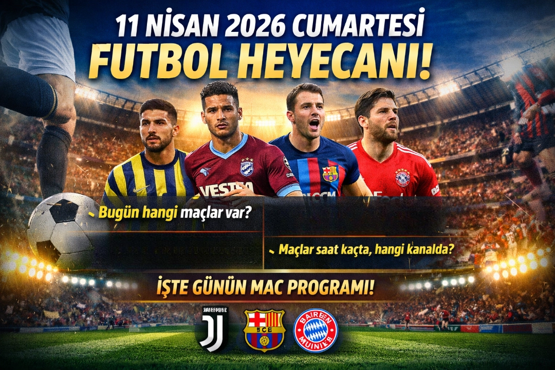 Futbolseverlerin merakla beklediği 11 Nisan 2026 Cumartesi gününün maç programı açıklandı. Süper Lig’den Premier Lig’e, LaLiga’dan Serie A’ya kadar birçok önemli ligde kritik karşılaşmalar oynanacak. Gün boyunca futbol heyecanı ekranlara taşınırken dev takımlar sahaya çıkacak.Özellikle Süper Lig’de Fenerbahçe ve Trabzonspor gibi ekiplerin maçları dikkat çekerken, Avrupa’da Barcelona, Bayern Münih ve Juventus gibi dev kulüpler sahne alacak.