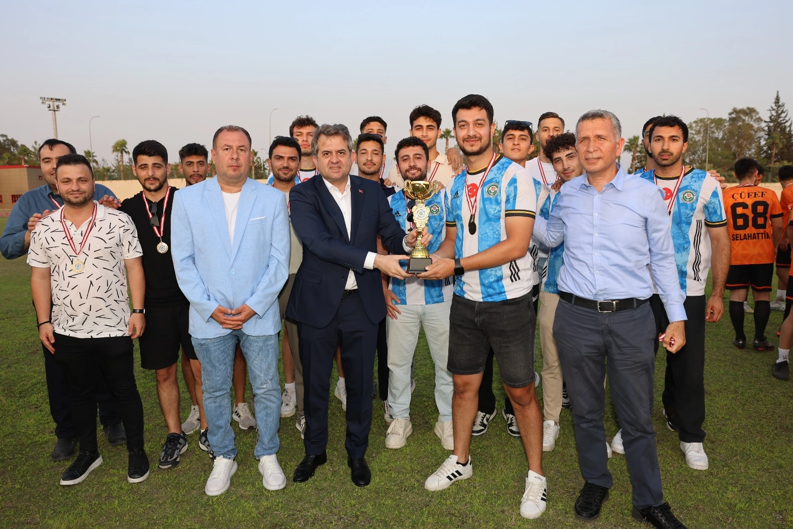 Çukurova Üniversitesi ‘’Meral Delen’’ Ünilig Çim Saha Futbol Müsabakaları sonucunda sıralama şu şekilde oluştu: 1. Mühendislik Fakültesi, 2. Fen Edebiyat Fakültesi, 3. ise Hukuk Fakültesi. Sporcuların kupa ve madalyaları Rektör Prof. Dr. Hamit Emrah Beriş ve rahmetli Meral Delen’in eşi Oğuzhan Delen tarafından takdim edildi. Yaklaşık 2,5 aydır devam eden ve 5 branşta 5 bin öğrenci ve personelin katıldığı 2024-2025 Çukurova Üniversitesi Meral Delen ÜNİLİG müsabakaları, anı fotoğrafı çekimiyle son buldu.