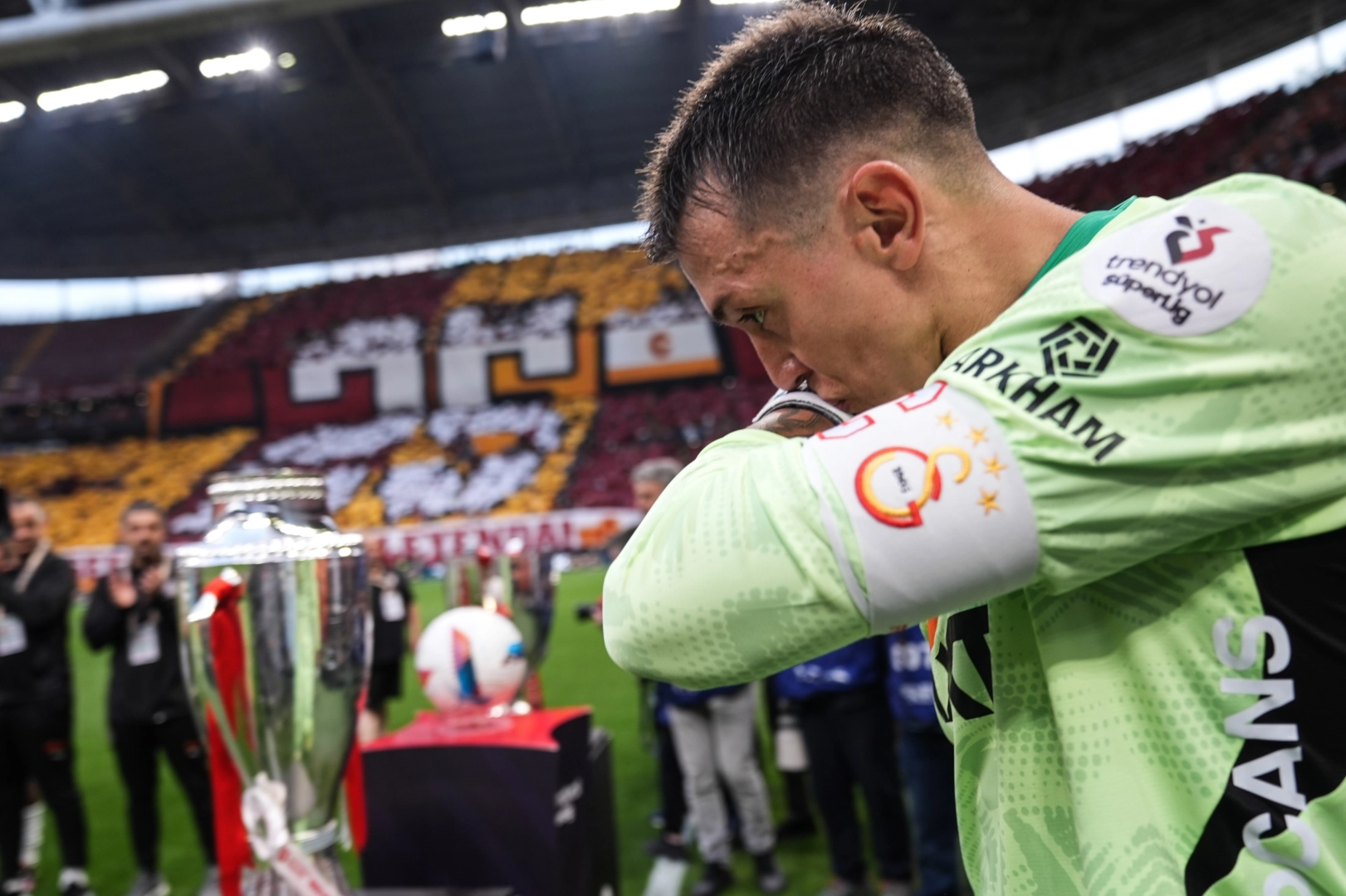 Galatasaray’ın efsane kalecisi Fernando Muslera, 14 sezonluk sarı-kırmızılı kariyerini RAMS Başakşehir maçıyla noktaladı. Trendyol Süper Lig’in 38. ve son haftasında oynanan karşılaşmada kaptan olarak sahaya çıkan Muslera, son dakikalarda yerini Günay Güvenç’e bıraktı. Takım arkadaşlarının omuzlarında saha kenarına getirilen deneyimli kaleci, veda anında duygusal anlar yaşadı, gözyaşlarına engel olamadı.
