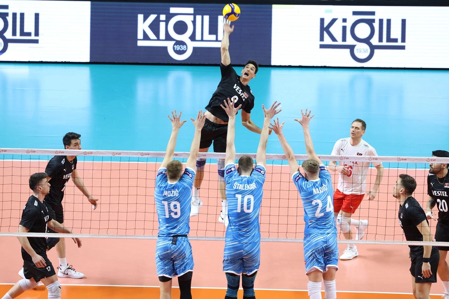 AY-YILDIZLI EKİPTE GENİŞ KADRO FORMA GİYDİMillilerde Efe Bayram, Bedirhan, Murat, Efe Mandıracı, Mert, Kaan ve libero Beytullah ilk 6’da yer alırken; Ahmet, Vahit Emre, Mirza, Yiğit ve Gökçen de süre alan diğer isimler oldu. Slovenya ise Mozic, Kozamernik, Mujanovic, Marovt, Stalekar, Najdic ve libero Kovacic’in ağırlıklı oynadığı kadrosuyla sahadaydı.