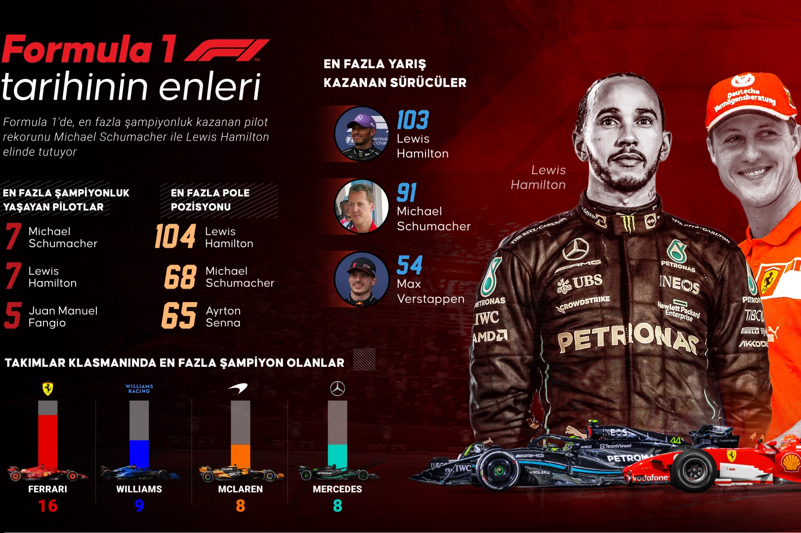 2024 sezonu Bahreyn'de başlayacak Formula 1'de, en fazla şampiyonluk kazanan pilot rekorunu Michael Schumacher ile Lewis Hamilton elinde tutuyor. Fransa Alpleri'nde 29 Aralık 2013'te kayak yaparken geçirdiği kaza sonucu vücudunun büyük bölümü felç kalan Alman Schumacher, 7 şampiyonlukla uzun yıllar F1'in en başarılı sürücüsü unvanını taşıdı.