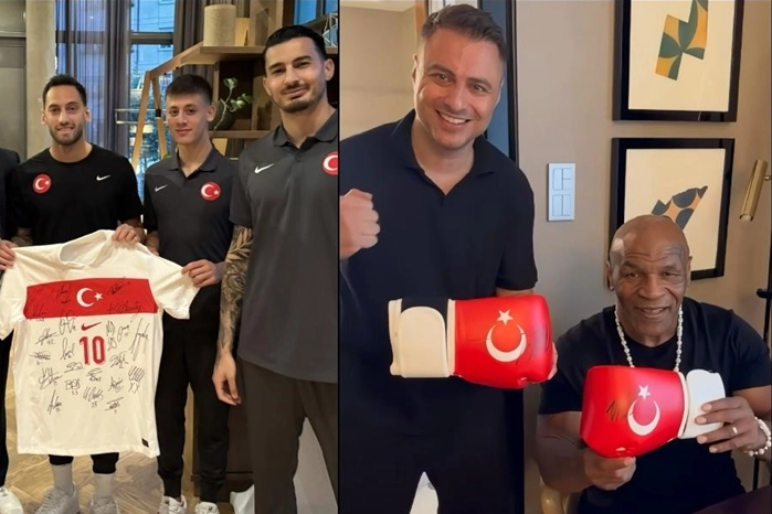 Milli takım kaptanı Hakan Çalhanoğlu, ABD'li boksöre gönderdiği videolu mesajda, "Merhaba Mike, bizim de sana bir hediyemiz var. Hepimizin imzaladığı bir formamızı sana gönderiyoruz. Biz de maçta büyük bir mücadele vererek galibiyet ile döneceğimize inanıyoruz. Bu zaferi ülkemiz için kazanacağız." ifadelerini kullandı.