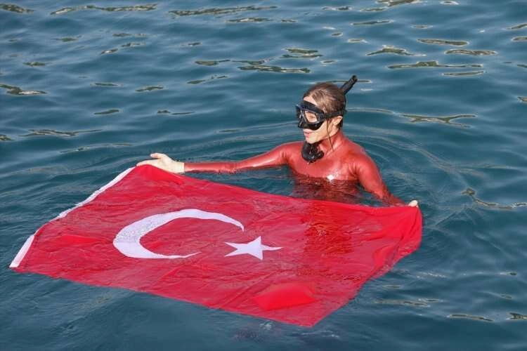 ANTALYA (AA) - Milli sporcu Şahika Ercümen, Cumhuriyet'in 100. yılı etkinlikleri kapsamında Antalya'da gerçekleştirdiği dalışta Türk bayrağı açtı.