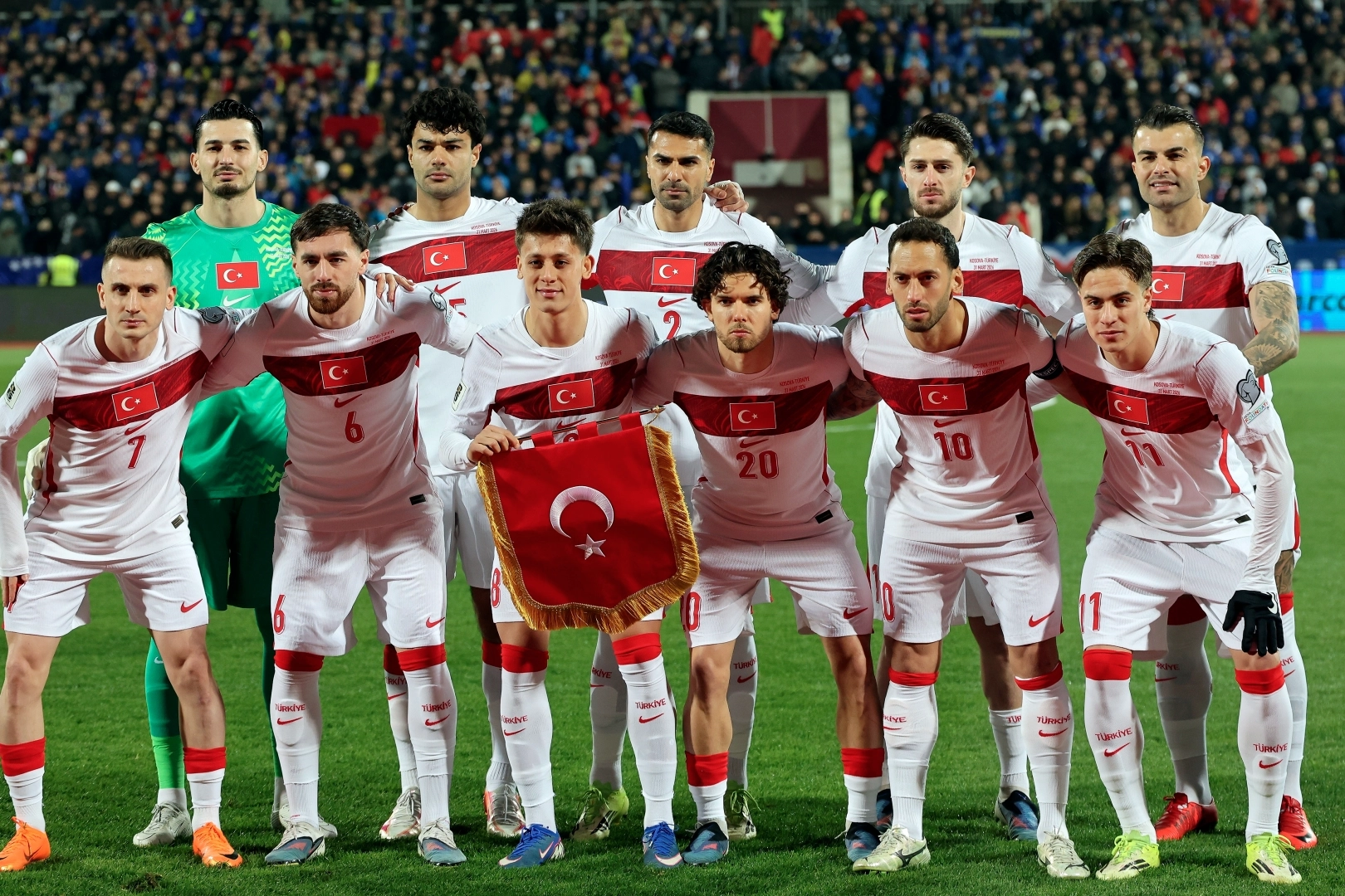 HAKAN ÇALHANOĞLU: BİZİ MAÇTAN ÖNCE UYUTMADILARKarşılaşmanın ardından açıklamalarda bulunan kaptan Hakan Çalhanoğlu, Kosova'da zorlu şartlarla mücadele ettiklerini dile getirdi. Müsabaka öncesinde çeşitli psikolojik baskılara maruz kaldıklarını belirten tecrübeli futbolcu, "Bunun farkındaydık. Bizi maçtan önce uyutmadılar. Merih ile beraber camdan dışarı baktık, 'Acaba ne oldu?' diye. Korktuk aslında. Biz buna hazırlıydık. Bu tarz şeyler yapacaklarını biliyorduk. Tüm arkadaşlarımı, ekibi, hocamızı, emeği geçen herkesi tebrik etmek istiyorum. Kolay kolay gelmedik. Başardığımız için çok mutluyum. Ülkemizi mutlu ettiğimiz çok gururluyum. Artık 24 yıl sonra başardığımız için çok gururluyum" dedi.