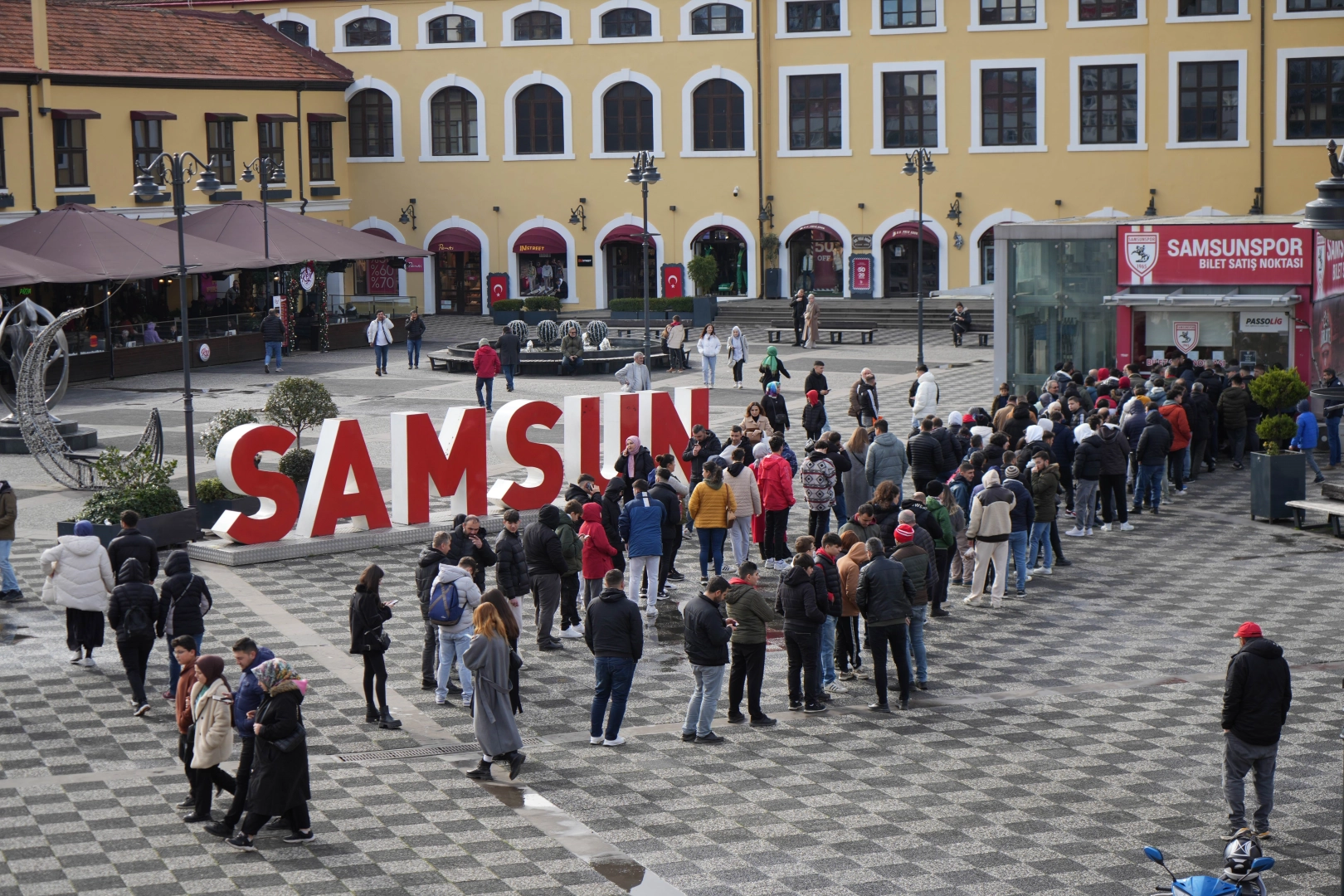Samsunspor ile Galatasaray Süper Lig’de 12 yıl sonra Samsun’da karşı karşıya gelecek. Samsunsporlu taraftarlar, bugün saat 11.00’de satışa çıkarılan biletlerden alabilmek için sabahın ilk saatlerinden itibaren bilet satış noktalarında uzun kuyruklar oluşturdu. Sıranın kendilerine gelmesini bekleyen taraftarlar, gişeye ulaştıklarında ise şoke oldu. İnternet üzerinden alınan biletler nedeniyle doğu ve batı tribünlerinin biletleri dakikalar içerisinde tükenirken, taraftarlar kale arkalarında kalan biletleri alabilmek için birbirleriyle yarıştı. Çok kısa sürede satışa çıkartılan 30 bin 548 adet biletten 23 bin 500 adeti satılırken, taraftarlar kale arkalarında kalan 7 bin adet bileti almak için uzun sürede kuyrukta beklediler.