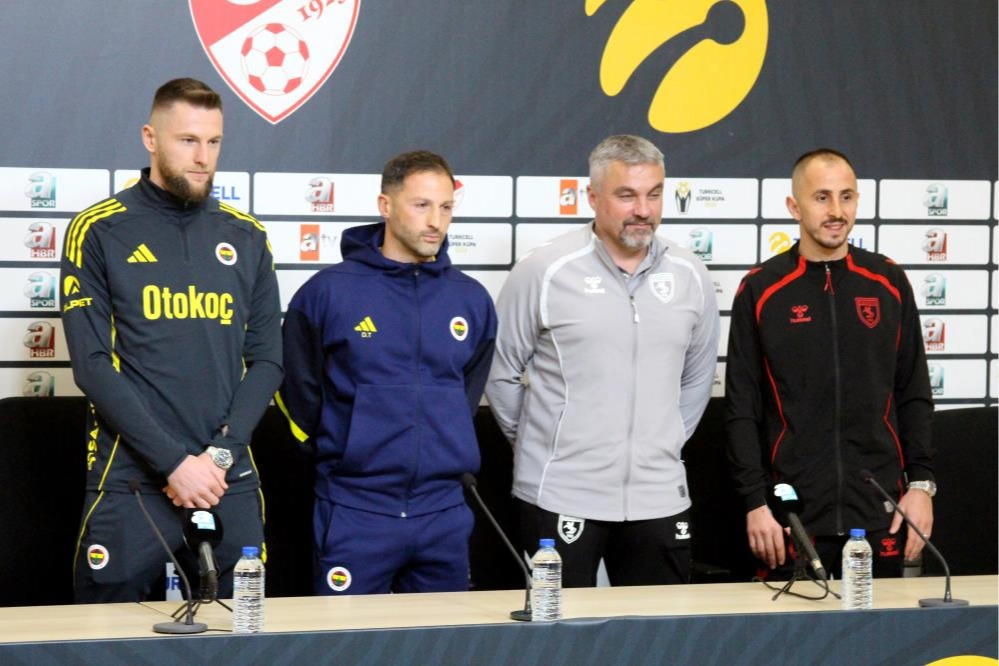 Turkcell Süper Kupa yarı finali öncesinde Yeni Adana Stadyumu’nda ortak basın toplantısı düzenlendi. Toplantıya Fenerbahçe ve Samsunspor teknik direktörleri ile takım kaptanları katıldı.Basın mensuplarını Türkçe selamlayarak sözlerine başlayan Fenerbahçe Teknik Direktörü Domenico Tedesco, “Herkese iyi akşamlar ve mutlu yıllar” dedi. Karşılaşmaya dair değerlendirmelerde bulunan Tedesco, Samsunspor’un organize ve güçlü bir ekip olduğuna dikkat çekti.