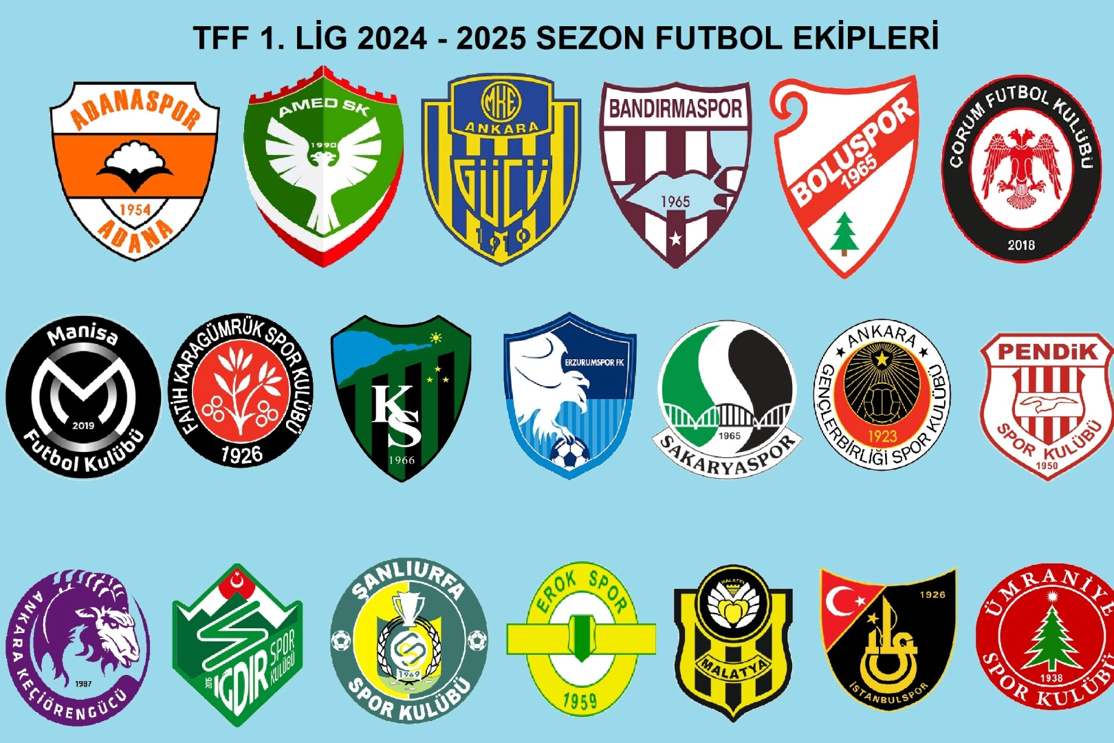 TFF 1. Ligi’nde Adanaspor, Amed Sportif, Ankaragücü, Bandırmaspor, Boluspor, Çorum FK, Erzurumspor, Esenler Erokspor, Fatih Karagümrük, Gençlerbirliği, Iğdır FK, İstanbulspor, Keçiörengücü, Kocaelispor, Manisa FK, Pendikspor, Sakaryaspor, Şanlıurfaspor, Ümraniyespor, Yeni Malatyaspor ekipleri mücadele edecek.