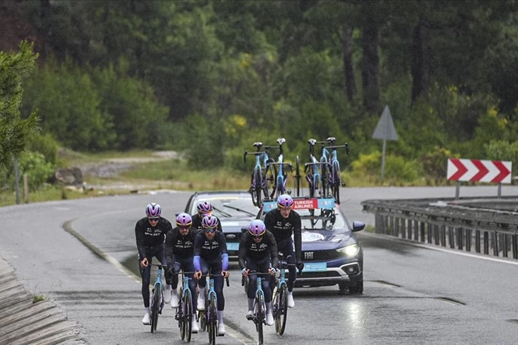 Eşsiz manzara, zorlu hava şartlarıTUR 2025'te zorlu hava şartlarıyla da mücadele eden bisikletçiler, Türkiye'nin doğal güzelliklerinin eşliğinde etapları tamamlamaya çalışıyor.