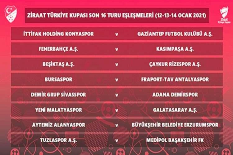 İSTANBUL (İHA) - Ziraat Türkiye Kupası’nda son 16 turu eşleşmeleri, gerçekleşen kura çekimi ile belirlendi. Son 16 turu karşılaşmaları 12, 13 ve 14 Ocak'ta oynanacak ve bu turda VAR sistemi de kullanılacak. Ziraat Türkiye Kupası son 16 turu eşleşmeleri Riva Hasan Doğan Milli Takım Kamp Eğitim Merkezi’nde yapılan kura çekimi ile belli oldu. Tek maç eleme usulüne göre gerçekleştirilecek olan son 16 turunda mücadeleler ise 12, 13 ve 14 Ocak tarihlerinde oynanacak. Son 16 turunda maçlarda Video Yardımcı Hakem (VAR) sistemi de kullanılacak. Kura çekiminde Türkiye Futbol Federasyonu Maç Planlama Müdürü Besim Yalçın, Türkiye Futbol Federasyonu İcra Kurulu Üyesi, Ümit Milli Takım ve Genç Takımlar Sorumlusu Hamit Altıntop ile TFF Gelişim Direktör Yardımcısı Rüştü Reçber katılım gösterdi. Hamit Altıntop: "Genç futbolcuların reklamı açısından örnek oldu" Ümit Milli Takım ve Genç Takımlar Sorumlusu Hamit Altıntop kura öncesi yaptığı açıklamada 5. turda çok heyecanlı maçları geride bıraktıklarını ifade ederek, "Uzatmalar ve penaltılarla, futbolda istediğimiz heyecanı ve tutkuyu görebildik. Sadece eksik olan taraftarlardı. Gelecek aylarda o alanda da ilerleyip inşallah statları doldururuz. Duamız o yönde. Tek maç sisteminde ne kadar ciddiyet olması gerektiğini ve telafisi olmadığından bahsetmiştik. Her pozisyon, her karar, her gol çok önemli. Alt liglerde oynayan takımların kendilerini göstermesi ve gençlerin Türk futbolseverlerine reklamı açısından örnek oldu. Umuyorum ki bu tur gelecek için de biraz daha umut aşılamıştır" şeklinde konuştu. Rüştü Reçber: "Bu turda gençlerden gelenler olduğunu gördük" Gençlerin ileri dönük umut verdiğini söyleyen TFF Gelişim Direktör Yardımcısı Rüştü Reçber ise, "Bizim için önemli olan, ne kadar genç olduğu ve performansları. Merak ettiğim bir diğer konu kalecilerin nasıl olduğu. 3 günde oyuncu ve kaleci açısından bunların var olduğunu gördük. Oynamayan futbolcuları görebilmemiz, onları izlemeyenlerin görmesi için çok önemliydi. Bu 3 gün ileriye dönük anlamda gençlerden gelenler olduğunu gösterdi" açıklamasını yaptı. Tek maç eleme ile oynanan maçların heyecanına da değinen Reçber, “En büyük heyecan budur, ne olacağı belli olmaz. 90 dakikalık motivasyon sunucu getirebiliyor. Özellikle alt liglerdeki takımların kendilerini gösterme düşüncesi bize bunu yaşatıyor" diye konuştu. Son 16 Turu kura çekiminin ardından oluşan eşleşmeler ise şu şekilde: Konyaspor-Gaziantep Futbol Kulübü Fenerbahçe-Kasımpaşa Beşiktaş-Çaykur Rizespor Bursaspor-Antalyaspor DG Sivasspor-Adana Demirspor Yeni Malatyaspor-Galatasaray Aytemiz Alanyaspor-BB Erzurumspor Tuzlaspor-Medipol Başakşehir