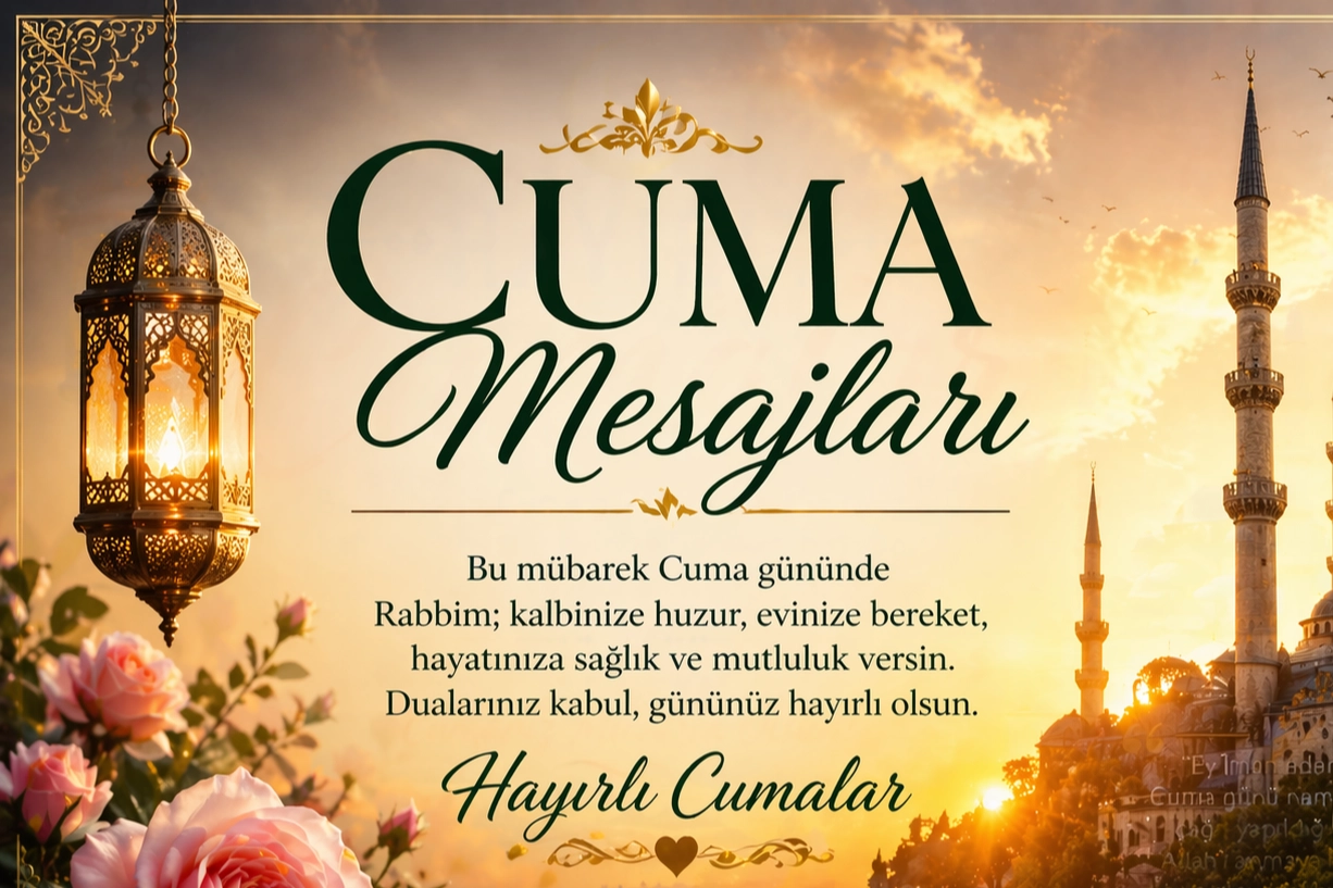 Rabbim bu mübarek günde tüm hayırlı dileklerinizi kabul eylesin. Sevdiklerinizle birlikte huzurlu bir Cuma geçirmeniz dileğiyle.