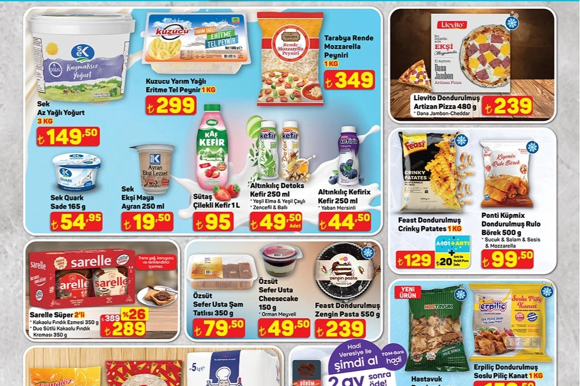 A101 9 NİSAN AKTÜEL ÜRÜNLER KATALOĞUKatalogda en çok ilgi gören ürünlerin başında peynir ve kahvaltılık çeşitleri yer aldı. Torku Tam Yağlı Tost Peyniri 600 gr 249 TL, Ahir Klasik İnek Peyniri 600 gr 209 TL, Kaanlar Taze Peynir 1 kg 179 TL, Muratbey Lor Peyniri 500 gr 79,50 TL fiyatıyla raflarda olacak. Şahin marka dana sucuk 399,50 TL, pastırma ise 229 TL’den satışa sunulacak.