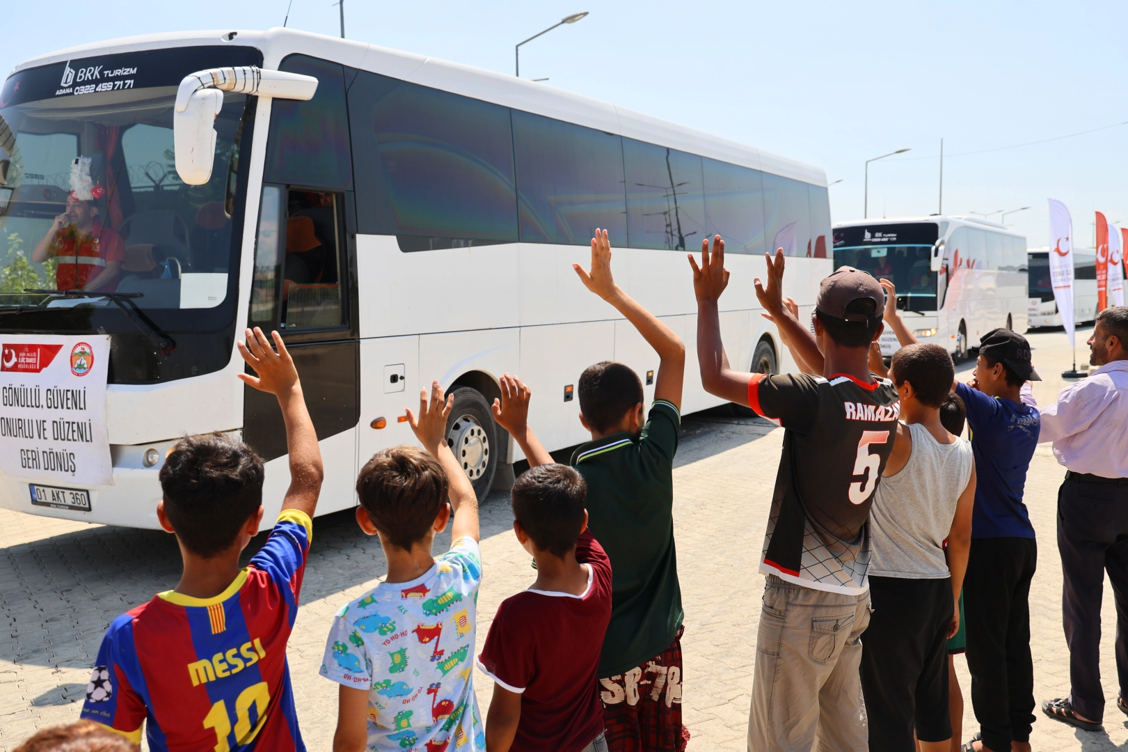 SURİYELİLERİN ÜLKELERİNE DÖNÜŞÜ SÜRÜYORTürkiye’ye iç savaştan kaçarak sığınan Suriyelilerin ülkelerine dönüşleri sürüyor. Adana Sarıçam’daki Geçici Barınma Merkezi’nde kurulan Gönüllü Geri Dönüş Koordinasyon Merkezi’nden bugün 160 Suriyeli daha otobüs ve tırlarla Suriye’ye gönderildi. Gönüllü, güvenli ve düzenli geri dönüş süreci, İçişleri Bakanlığı Göç İdaresi Başkanlığı koordinasyonunda yürütülüyor.